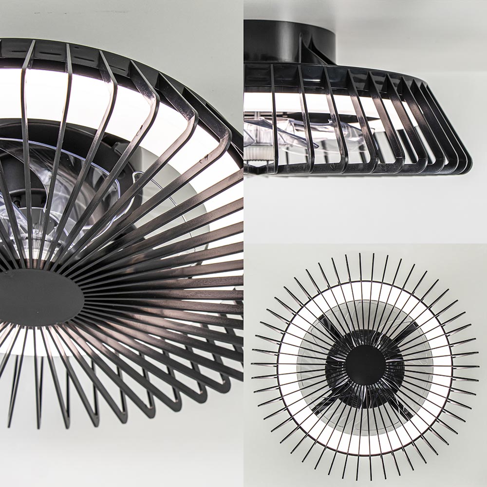 Een moderne design plafondventilator met LED zoals we deze nog niet eerder hebben gezien. De ronde ventilator oogt meer als een plafondlamp dan een ventilator maar heeft wel beide functies in één. De architectonische kap geeft de plafondventilator een design look die door de grootte van 53 cm doorsnede een mooie eye-catcher is. De moderne plafondventilator met lamp is voorzien van een geïntegreerd LED met een aantal functies. Zo kunt u de kleurtemperatuur kiezen tussen de 2700 en 5000 Kelvin en kunt u gemakkelijk de lamp dimmen. Dit bediend u allemaal gemakkelijk en snel met de meegeleverde afstandsbediening. Een ideale plafondlamp en ventilator in één die ook nog eens een strakke design uitstraling heeft.