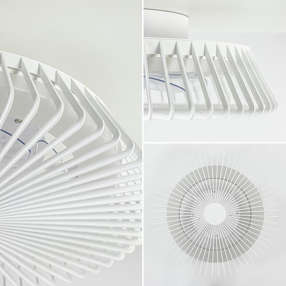 Een moderne design plafondventilator met LED zoals we deze nog niet eerder hebben gezien. De ronde ventilator oogt meer als een plafondlamp dan een ventilator maar heeft wel beide functies in één. De architectonische kap geeft de plafondventilator een design look die door de grootte van 63 cm doorsnede een mooie eye-catcher is. De moderne plafondventilator met lamp is voorzien van een geïntegreerd LED met een aantal functies. Zo kunt u de kleurtemperatuur kiezen tussen de 2700 en 5000 Kelvin en kunt u gemakkelijk de lamp dimmen. Dit bediend u allemaal gemakkelijk en snel met de meegeleverde afstandsbediening of via uw mobiele telefoon en app. Deze verbindt u via Bluetooth met de lamp zodat u vanaf uw bank of bed snel de gewenste instelling kunt maken. Een ideale plafondlamp en ventilator in één die ook nog eens een strakke design uitstraling heeft.