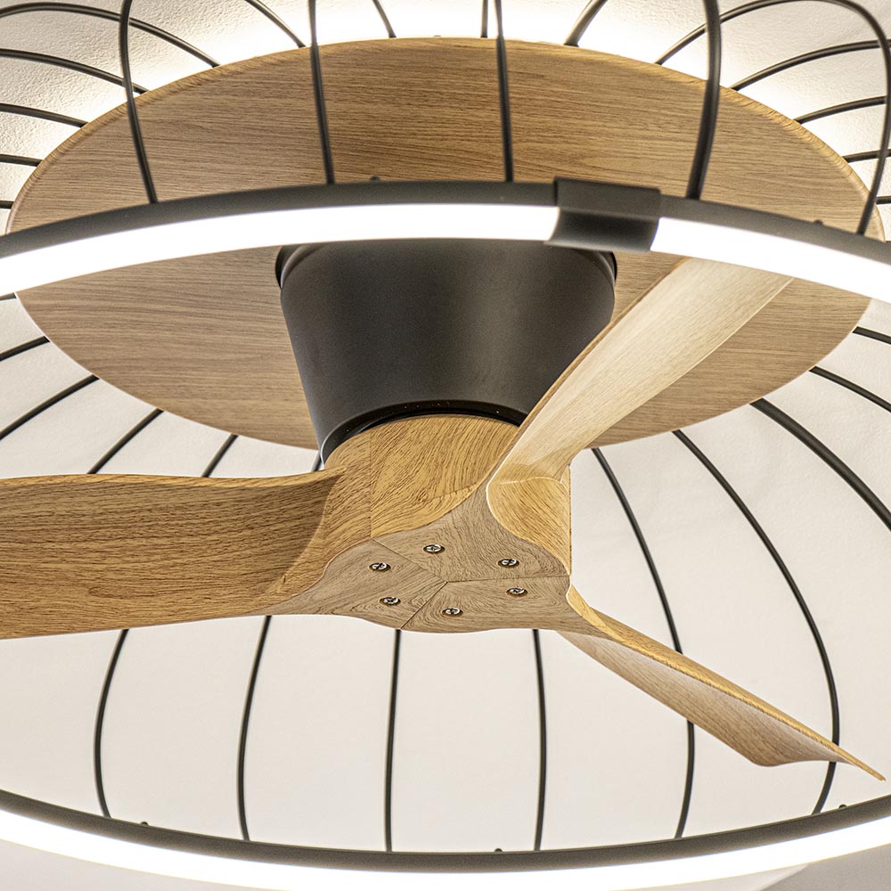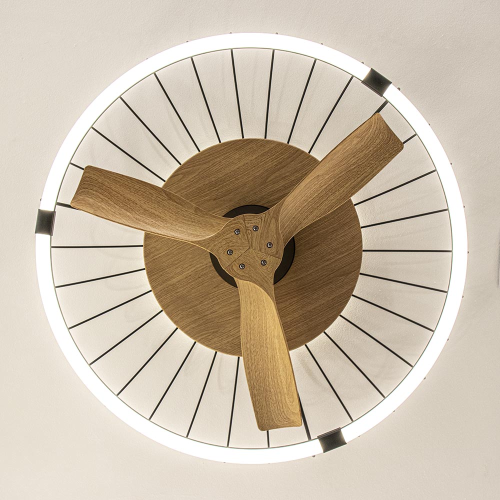 / Lampen / Bureaulampen / Ventilator Nature hout/zwart remote/app