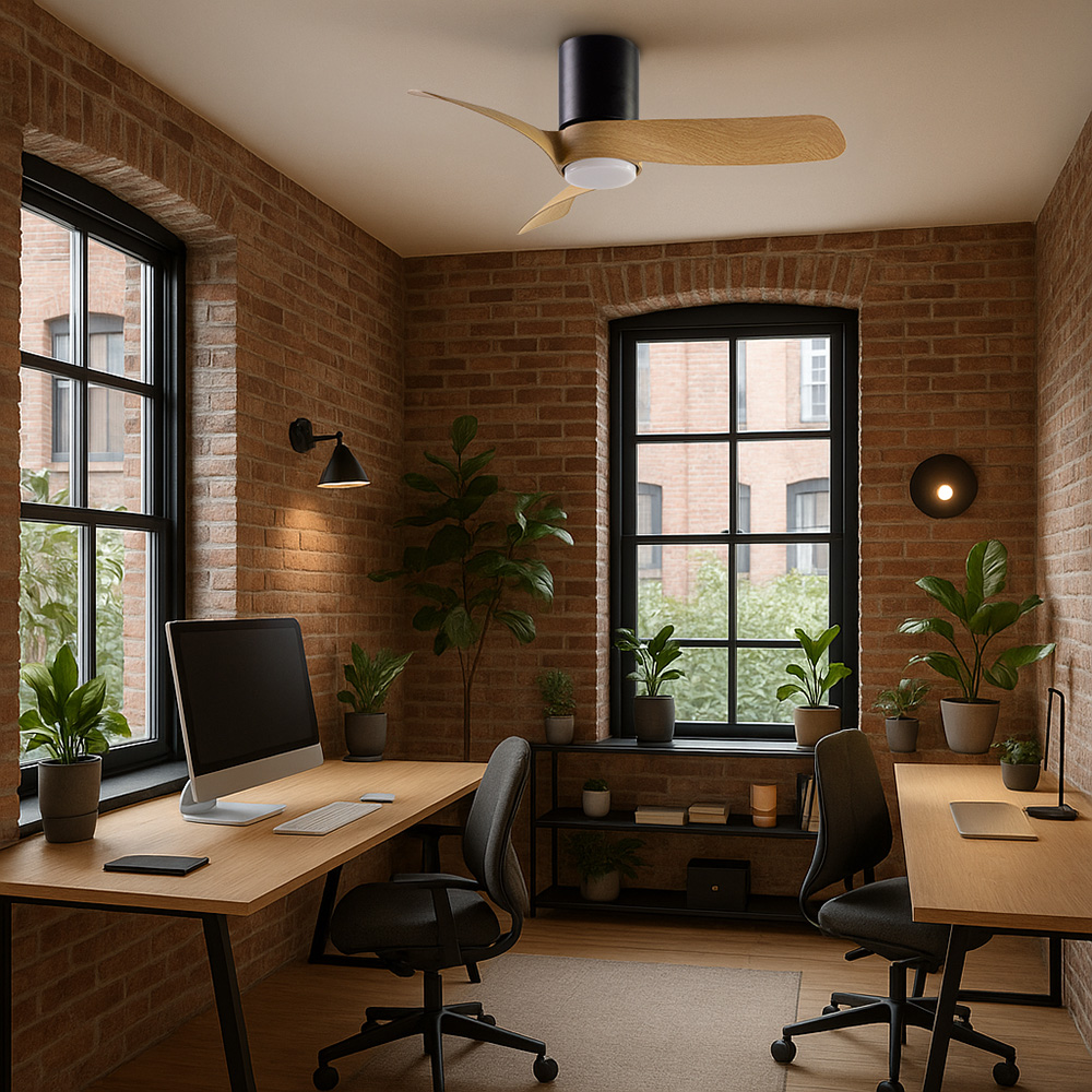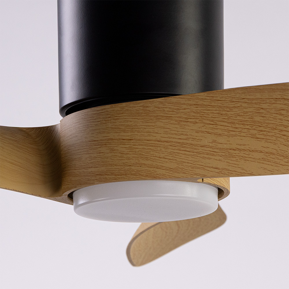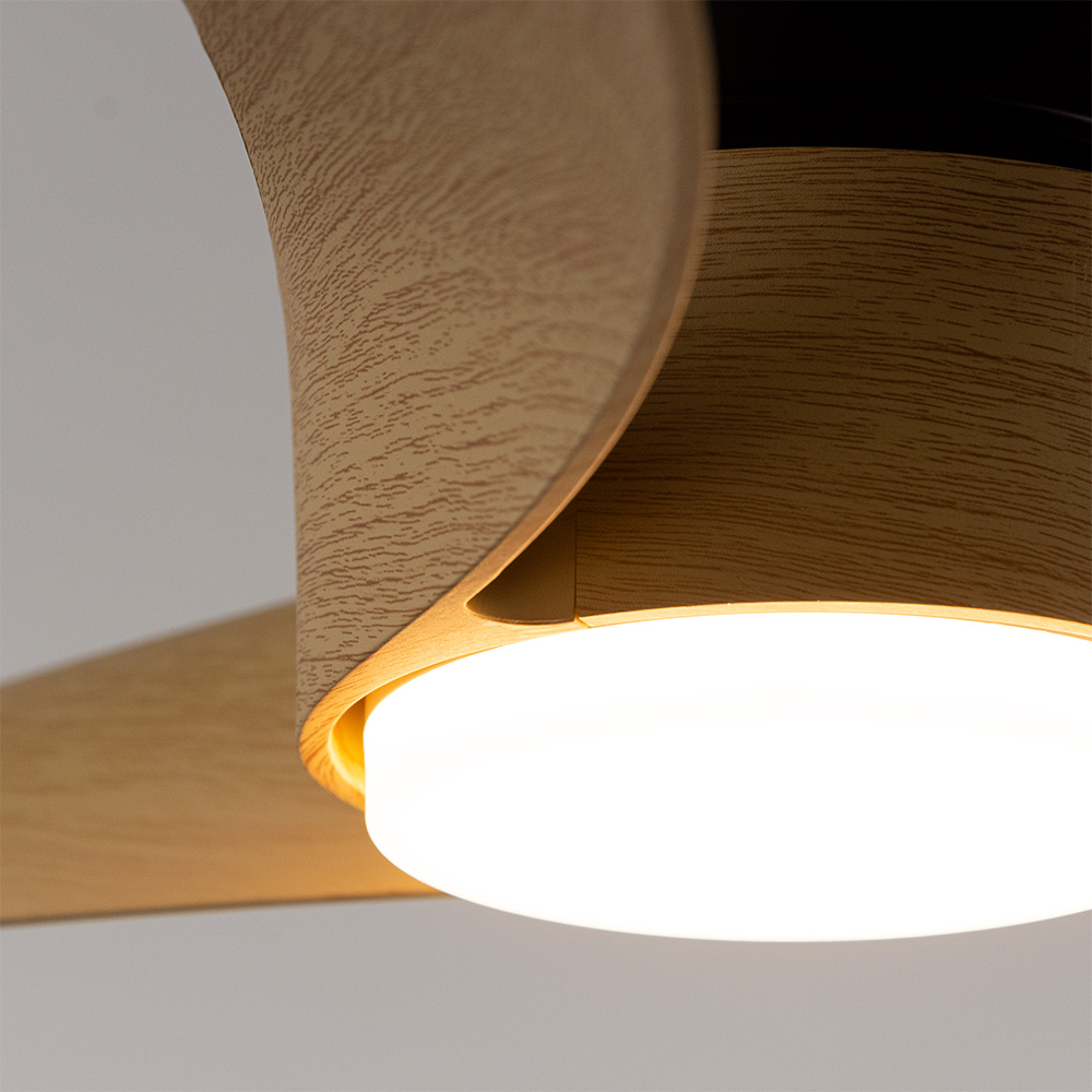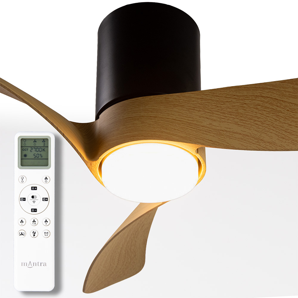 Deze moderne plafondventilator met geïntegreerde verlichting voegt stijlvol comfort toe aan iedere ruimte. Met zijn slanke zwarte behuizing, organisch gevormde bladen inhoutlook die zorgen voor een rustige luchtcirculatie in de ruimte. De krachtige maar fluisterstille motor zorgt voor een aangename luchtcirculatie, terwijl de centrale LED-lamp voor prettige, gelijkmatige verlichting zorgt. Via de bijgeleverde afstandsbediening regel je eenvoudig de lichtkleur (van 2700K tot 5000K), lichtsterkte én ventilatorsnelheid voor een optimaal comfort het hele jaar door. Zo pas je de sfeer en temperatuur moeiteloos aan je wensen aan.