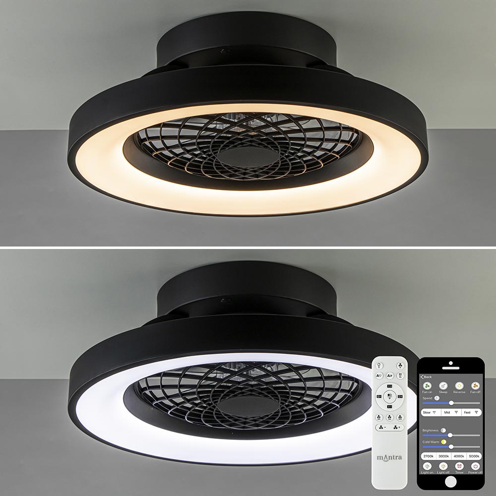 Homepagina / Lampen / Plafondlampen / Ventilator Tibet Mini zwart + remote cct