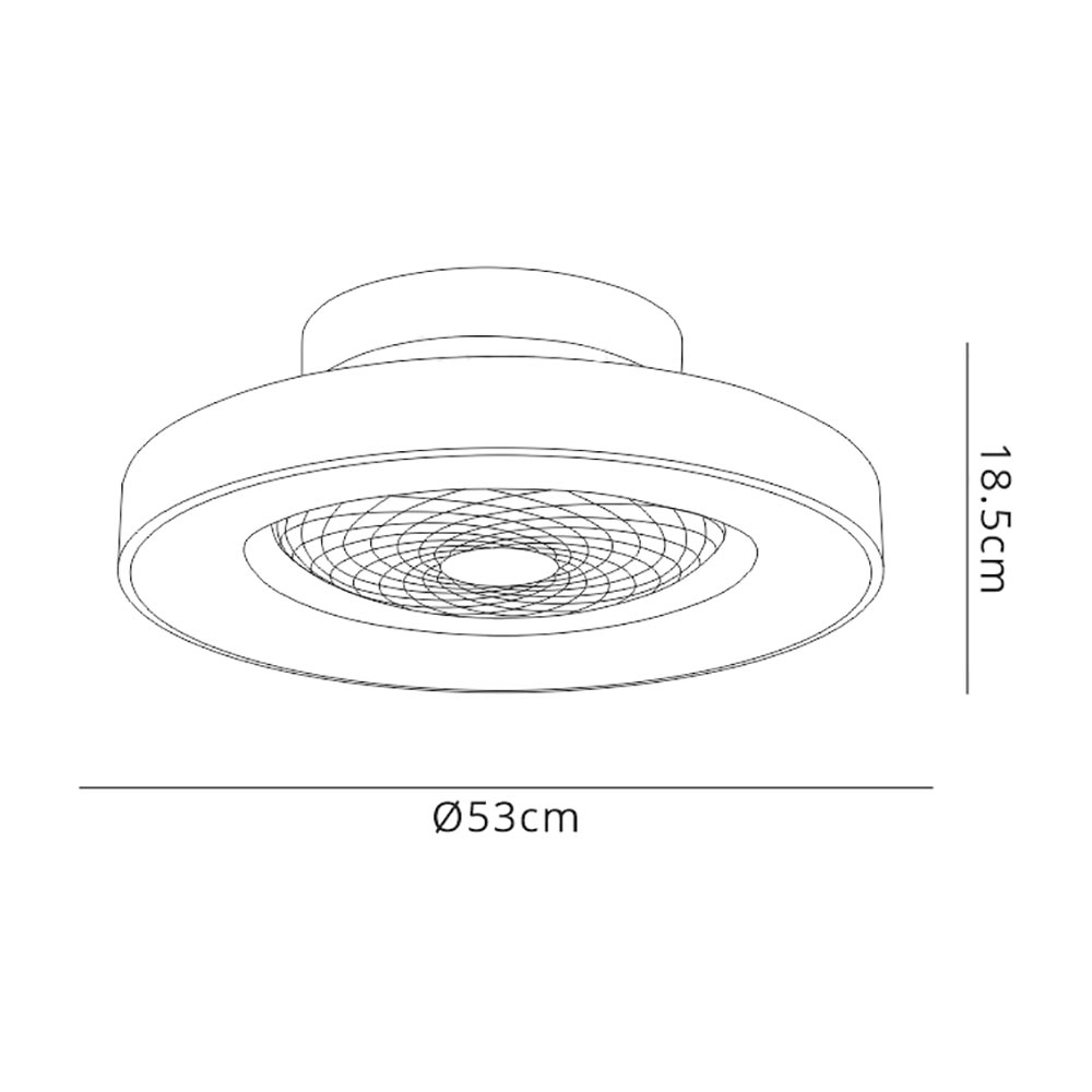 Een moderne plafondventilator met een strak design. Deze ronde ventilator bestaat uit twee delen, de buitenste ring is voorzien van geïntegreerd LED en de binnenste ring behuisd de ventilator. Het mooie is ook dat de ventilator en de lamp zijn te bedienen via de meegeleverde afstandsbediening. U stelt gemakkelijk en snel de gewenste snelheid van de ventilator in of dimt de verlichting. De LED verlichting is in te stellen qua kleurtemperatuur en intensiteit, ideaal voor in de woonkamer of slaapkamer. De moderne plafondventilator met lamp heeft een zomer en een winter stand zodat u deze het hele jaar door kunt gebruiken.