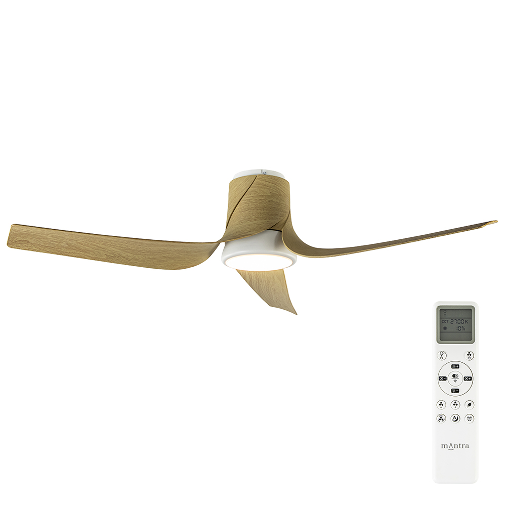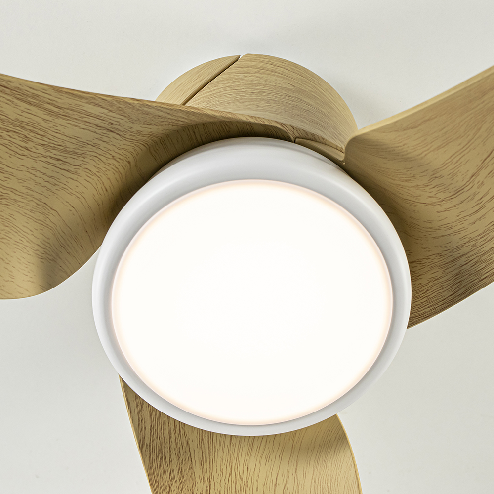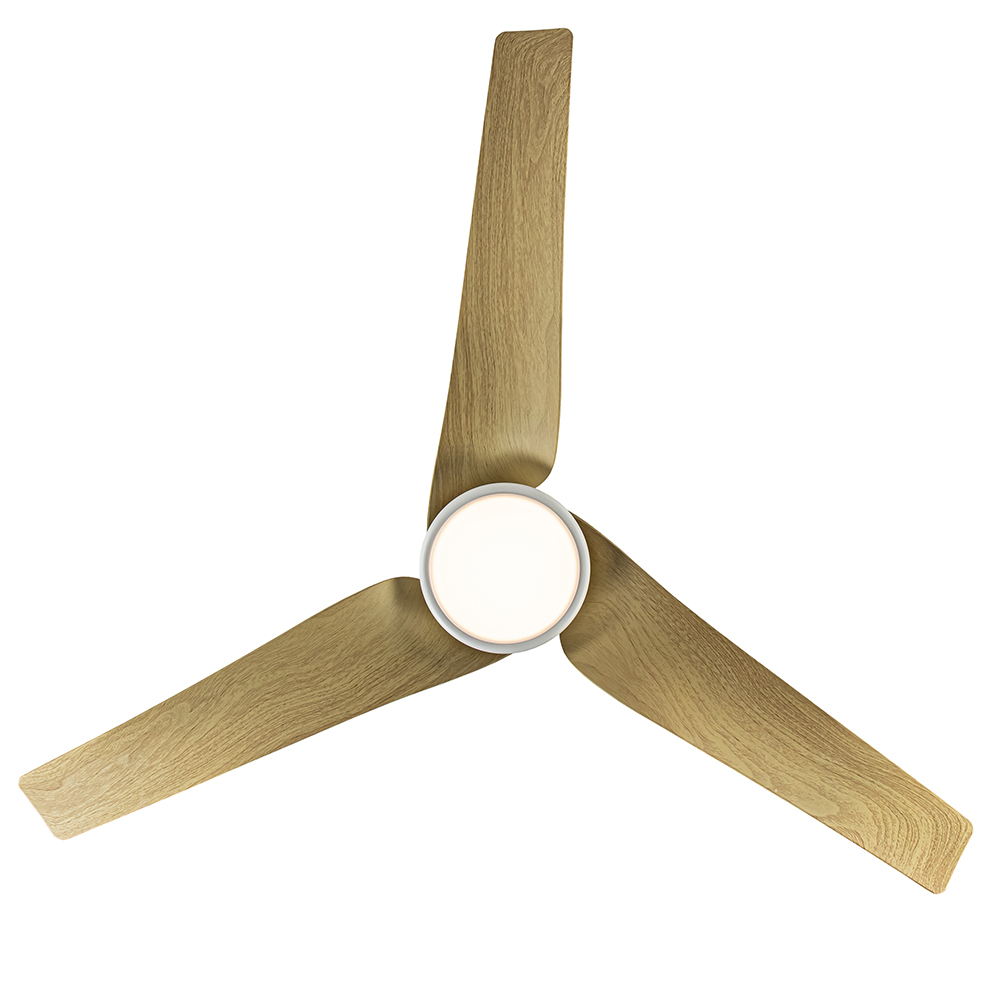 Een mooi design met een robuuste uitstraling. Deze grote plafondventilator heeft losse bladen met een houtlook. Deze zijn strak van design en gecombineerd met een wit armatuur. De ventilator is bedienbaar dmv de meegeleverde afstandsbediening. Zo kunt u de lamp en de ventilator apart bedienen met een druk op de knop. Ideaal voor in de woon- of slaapkamer.