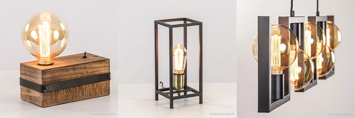 Voor een landelijk-, botanisch- of industrieel interieur hebben we de speciale warme vintage gold modellen. In het geval van een strak-, modern-, Scandinavisch- of design interieur dan zijn de grijze smoke lichtbronnen een perfecte optie.