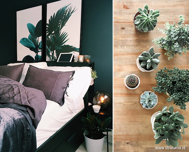 Voor een groene oase heb je geen planten nodig. Lampen van hout, rotal of bamboo voor een groene muur zijn al genoeg. Maar er zijn nog wel wat tips voor een botanische slaapkamer. Zo zijn echte planten heel goed voor je nachtrust. Ze zorgen voor voldoende zuurstof in je slaapkamer zodat je uitgeruster wakker wordt. Lampen in het botanische interieur passen in verschillende stijlen. Van design tot landelijk, van industrieel tot romantisch.