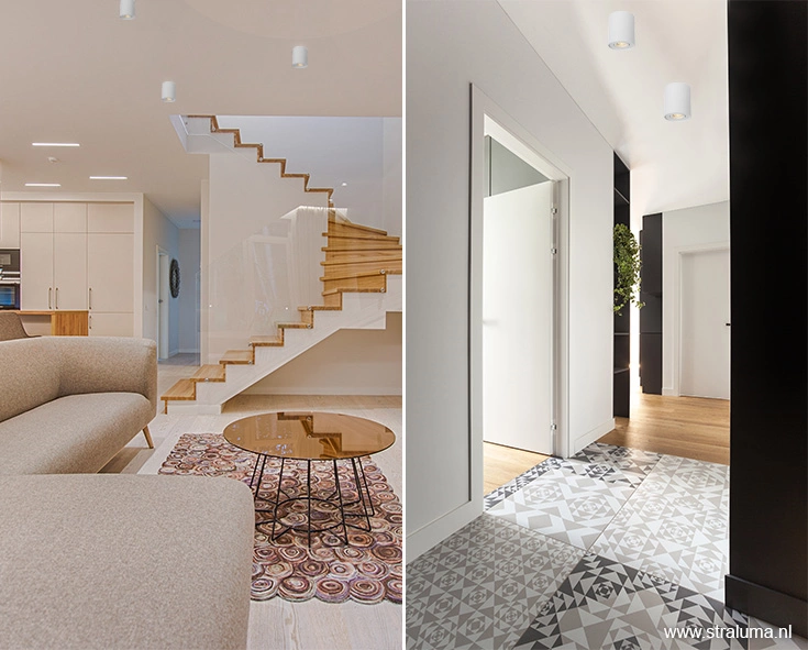 Inbouwspots zitten in het plafond weggewerkt, dit geeft een rustig beeld. Opbouwspots zijn zichtbaar, met meerdere exemplaren geeft dit een prachtig ritme. Voor beide opties is het belangrijk dat je voor de verbouwing of bouw weet waar de lichtpunten komen. Een goed lichtplan is dus essentieel. Lees hier meer over ons lichtadvies en bekijk onze voorbeelden!