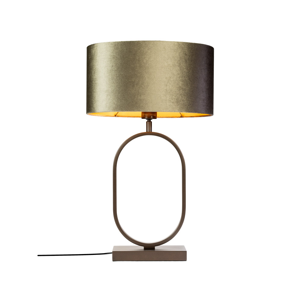 Belangrijkste kenmerken: • Kantelbaar lamphoofd: kap richtbaar naar alle zijden • Slank metalen frame in warme bruine tint • Goudkleurige ovale kap voor zacht, sfeervol licht • Compact formaat voor dressoir, nachtkastje of bijzettafel • E27-fitting: lichtbron eenvoudig te vervangen
