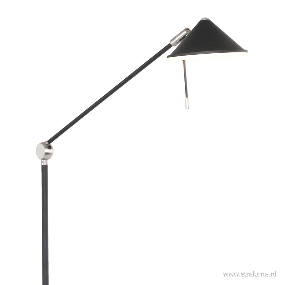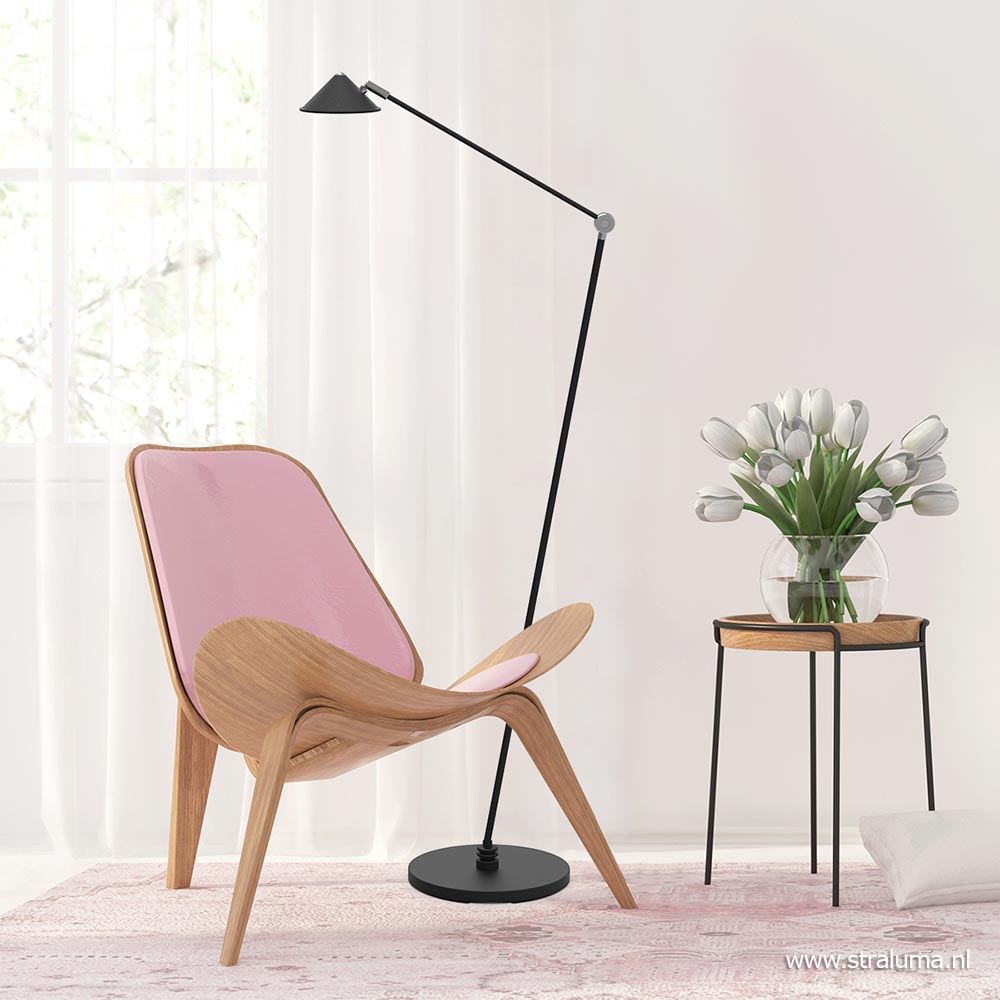 Deze functionele vloerlamp is een ideale toevoeging aan het interieur. De mat zwarte leeslamp is op drie punten te verstellen zodat deze perfect is neer te zetten naast uw bank of stoel. De verstelbare lamp is voorzien van LED met een dim to warm functie. Dit houdt in dat zodra de lamp dimt, deze zowel in intensiteit als in kleurtemperatuur dimt. De touchdimmer bevindt zich bovenop de kap, waardoor u er altijd gemakkelijk bij kunt en zo snel de juiste sfeer kunt creëren. Met één druk gaat de lamp aan/uit, houdt u de dimmer langer ingedrukt dan dimt de lamp net zolang tot u weer loslaat. De staande lamp wordt ondersteund door een ronde voet en is voorzien van een zwart snoer van 210 cm. Deze moderne leeslamp zorgt voor functie en sfeer en is dan ook met recht een ideale lamp te noemen.
