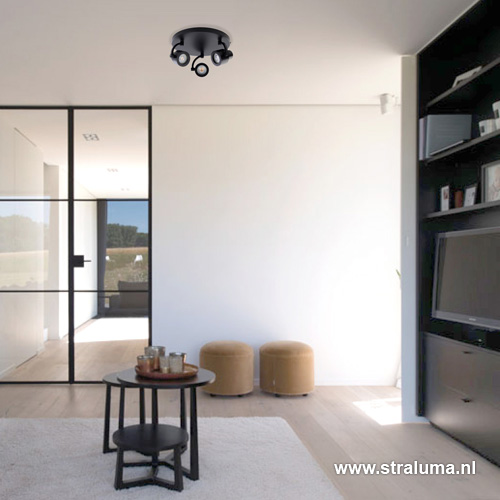 Moderne plafondspot uitgevoerd in staal en achteraf gespoten in mat zwart. Deze plafonnière komt uit de serie ‘Alto’, een mooie strakke serie opbouwspots in diverse uitvoeringen. De moderne spots zijn draaibaar en kantelbaar. Ideaal voor het uitlichten van een donkere hoek of lijst aan de muur. Door de zwarte uitvoering is deze 3-lichts spot uitstekend voor een modern of scandinavisch interieur.