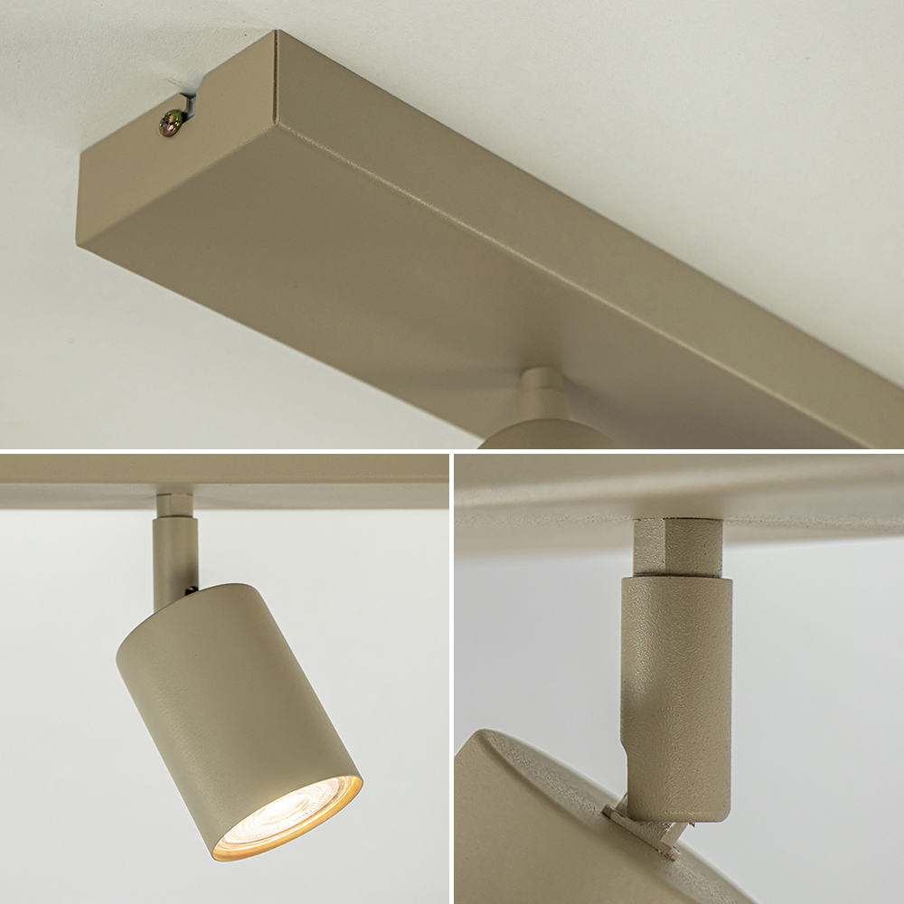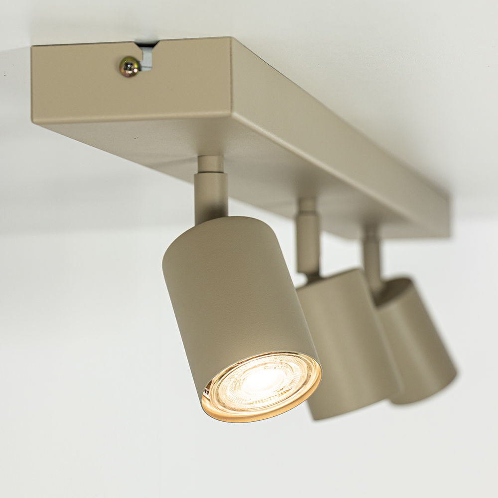 Deze moderne en strak vormgegeven spot is een stijlvolle toevoeging aan elk interieur. Uitgevoerd in een trendy beige kleur, voegt deze lamp een eigentijdse touch toe aan uw ruimte. De 3-lichts plafondlamp is gemaakt van duurzaam metaal, wat zorgt voor een lange levensduur en een hoogwaardige afwerking. Deze opbouwspot is voorzien van een GU10 fitting en is dimbaar middels een externe dimmer (exclusief). Dankzij het compacte en elegante ontwerp is deze lamp ideaal voor kleinere ruimtes of als accentverlichting in een groter interieur.