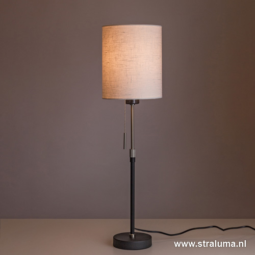 Wat een mooie nieuwe aanwinst voor de serie ‘Corona’. Een frisse verschijning deze tafellamp in zwart, staal en licht stoffen kap. Leuk is de mogeljkheid dat de Corona tafellamp in hoogte te verstellen is. Ideaal voor op een bijzettafel, nachtkastje of dressoir. Zo kunt u de zwarte tafellamp in formaat mooi aanpassen aan het meubel waar hij op staat. De linnen kap van deze schemerlamp is niet spierwit, maar net van het wit af.