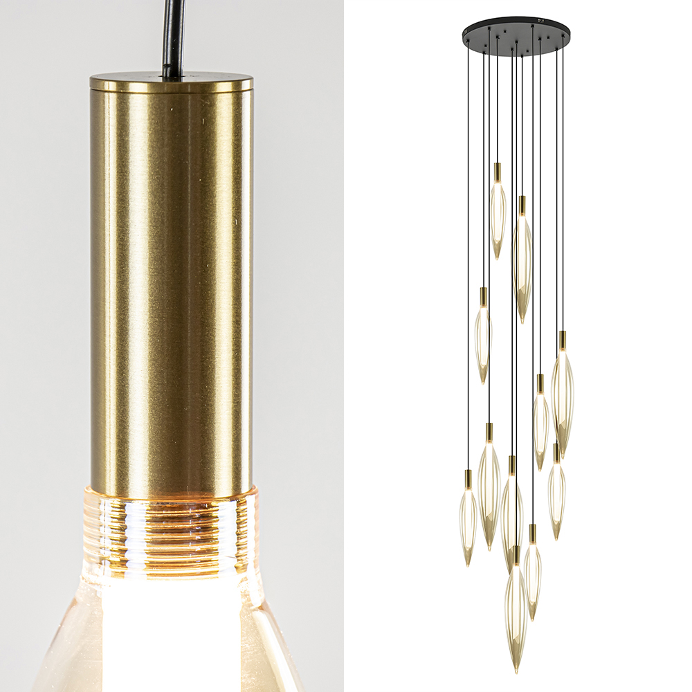 Met deze prachtige hanglamp maakt u een waar statement in uw interieur. Perfect voor in de vide, hal of zelfs boven een grote eettafel. Bundel de kappen bij elkaar of verdeel ze meer over de hoogte. Hoe de lamp ook hangt, het is een ware eyecatcher. De hanglamp heeft een mat zwart armatuur dat is gecombineerd met amber glazen kappen en bronzen details. Dit geeft de lamp echt die luxe chique uitstraling. Dit wordt versterkt door de matte cilinder in het glas dat oplicht wanneer de lamp wordt ingeschakeld. Zo onstaat er een mooi effect in het glas. De strak klassieke hanglamp is voorzien van geïntegreerd LED en geeft met 2700 Kelvin een fijne en sfeervolle warm witte verlichting. Dit is dimbaar middels een externe dimmer (exclusief).