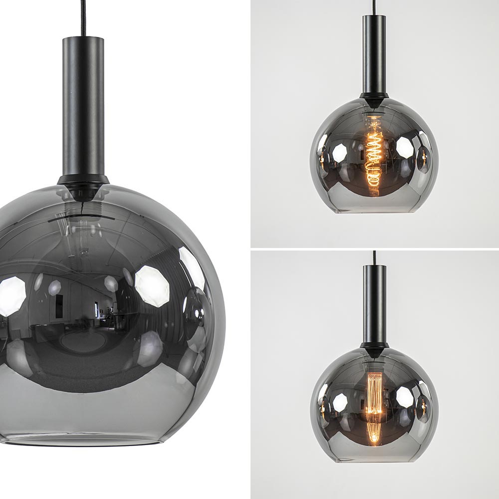 – hoogte: 400 cm – bevestiging: Ø45×2,5 cm – glas 1: Ø20 cm – glas 2: Ø25 cm – glas 3: Ø30 cm – fitting: Ø4,5×15,5 cm – metaal, mat zwart – smoke/titanium glas – dimbaar (exclusief) – exclusief lichtbron (3x E27) – gewicht: 12 kg
