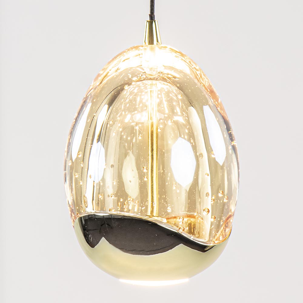 – hoogte: 350 cm – kappen: Ø9×12 cm – bevestiging: Ø47×4,5 cm (afwerkplaat: Ø50 cm) – metaal, mat zwart + goud – glas, amber – inclusief LED – 2700 Kelvin – 6300 lumen – in hoogte verstelbaar – dimbaar (exclusief) – gewicht: 16 kg