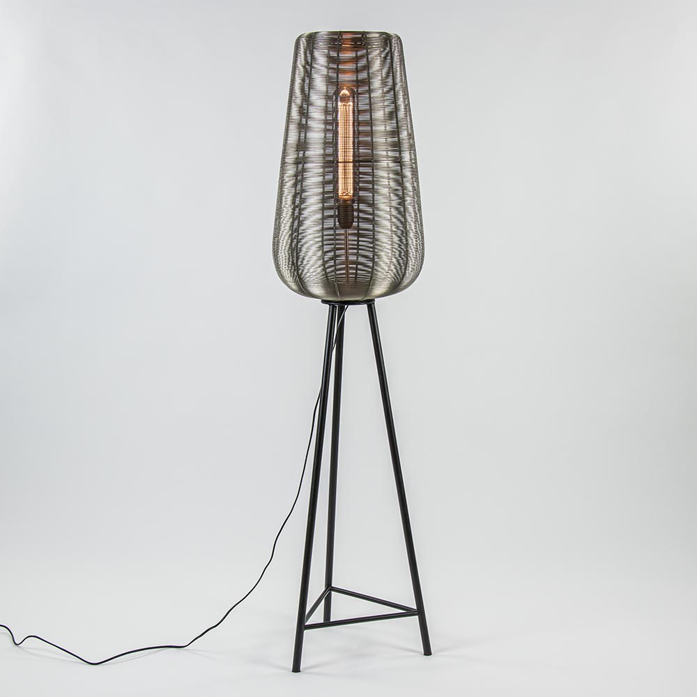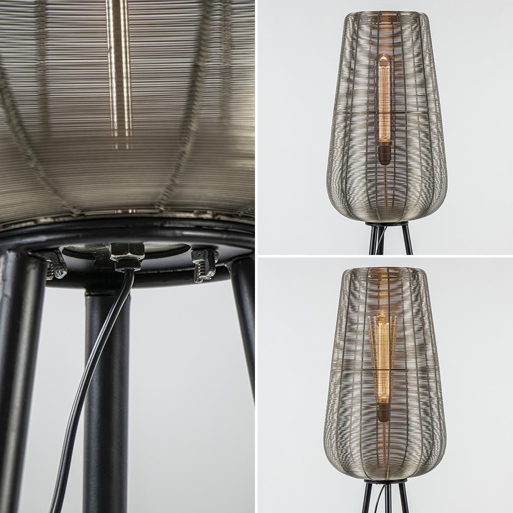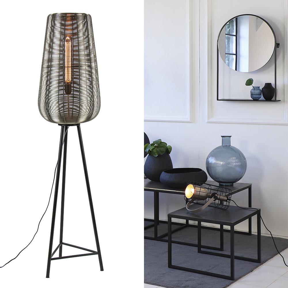 Homepagina / Lampen / Draadlampen / Vloerlamp Adeta zwarte driepoot met nikkel kap