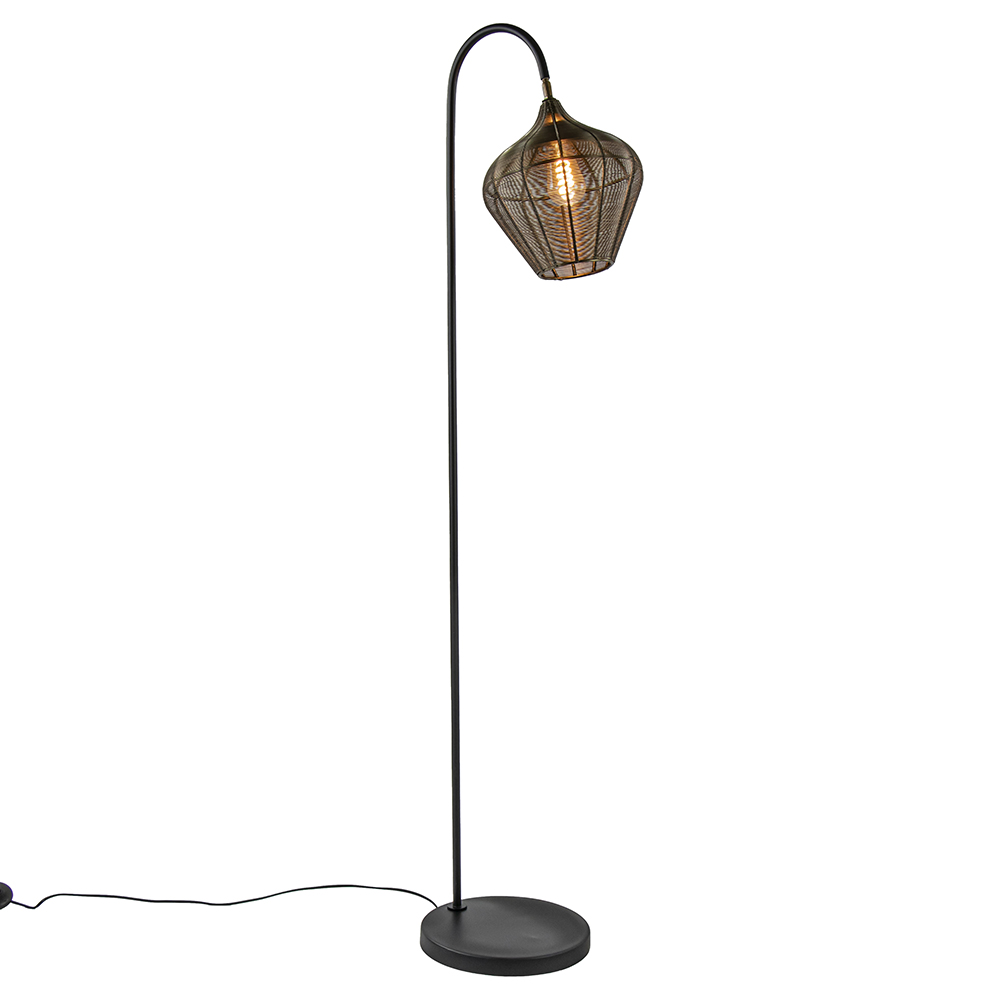 Homepagina / Lampen / Draadlampen / Vloerlamp Alvaro antiek brons + mat zwart