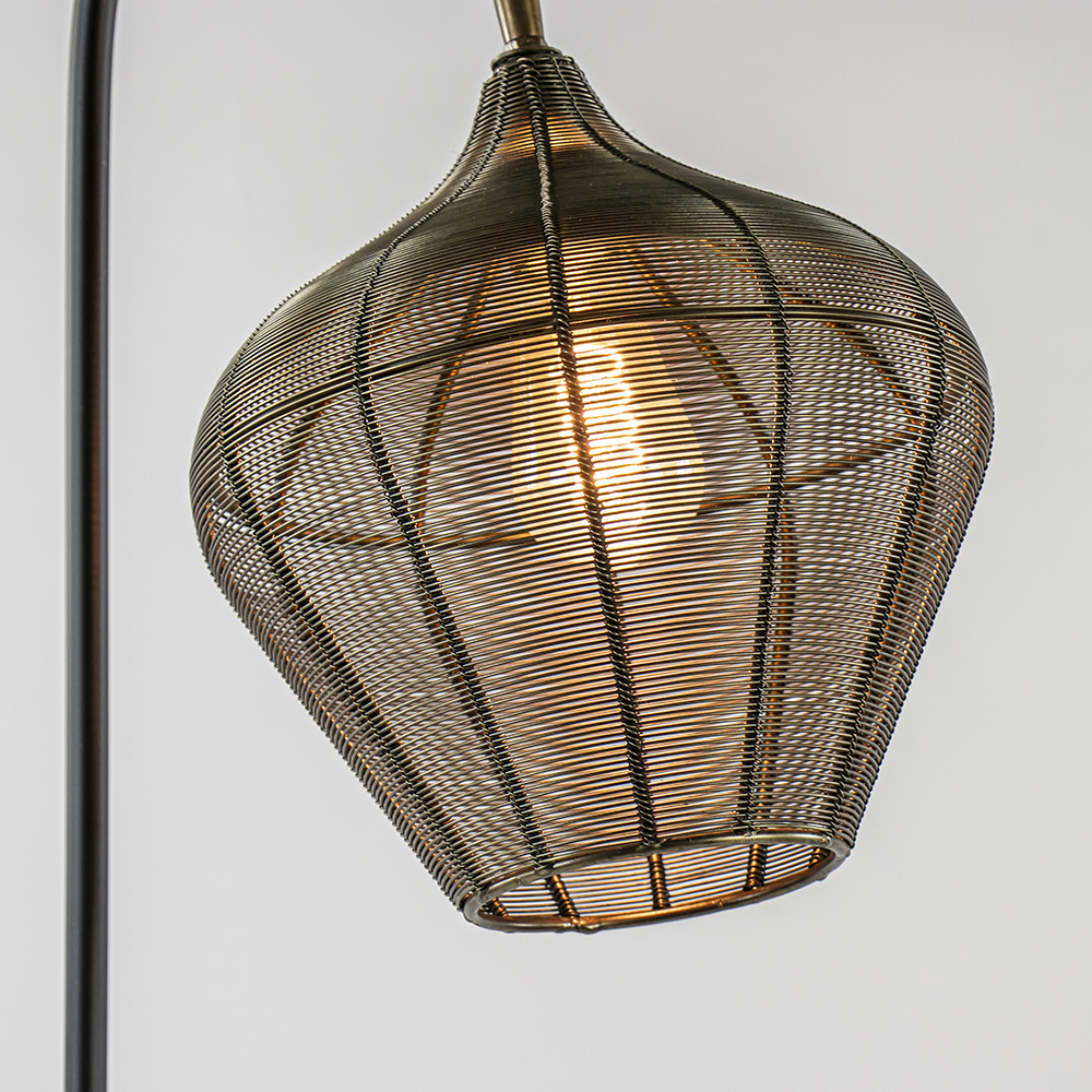 Alvaro is een sfeervolle vloerlamp die perfect past in een Scandinavisch of landelijk interieur. De vloerlamp is volledig van metaal en voorzien van een antiek bronzen en mat zwarte finish. De draadkap heeft een speelse vorm en is te kantelen. Alvaro is voorzien van een ronde voet met een zwart snoer van 195 cm. De staande lamp wordt gemakkelijk aan/uit geschakeld door de voetschakelaar die zich op 70 cm van de lamp bevindt.