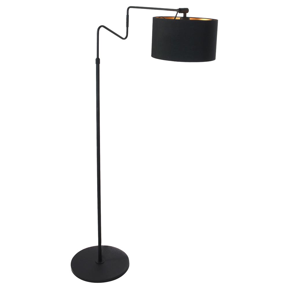 Deze moderne vloerlamp is een mooie sfeermaker in huis. De staande lamp is vervaardigd uit metaal en afgewerkt met een zwarte poedercoating wat een mooie matte look geeft. De zwarte vloerlamp heeft een ronde voet met een doorsnede van 32 cm en een verstelbaar armatuur. Zo is deze in hoogte te verstellen (130-158 cm) en is deze te draaien. De moderne vloerlamp is voorzien van een zwarte kap met een gouden binnenzijde, die zorgt voor een luxe uitstraling. De kap is te kantelen zodat u deze en het armatuur zelf helemaal naar wens kunt stellen. De zwart met gouden vloerlamp heeft een zwart snoer van 250 cm met een voetschakelaar en wordt geleverd zonder lichtbron (E27).