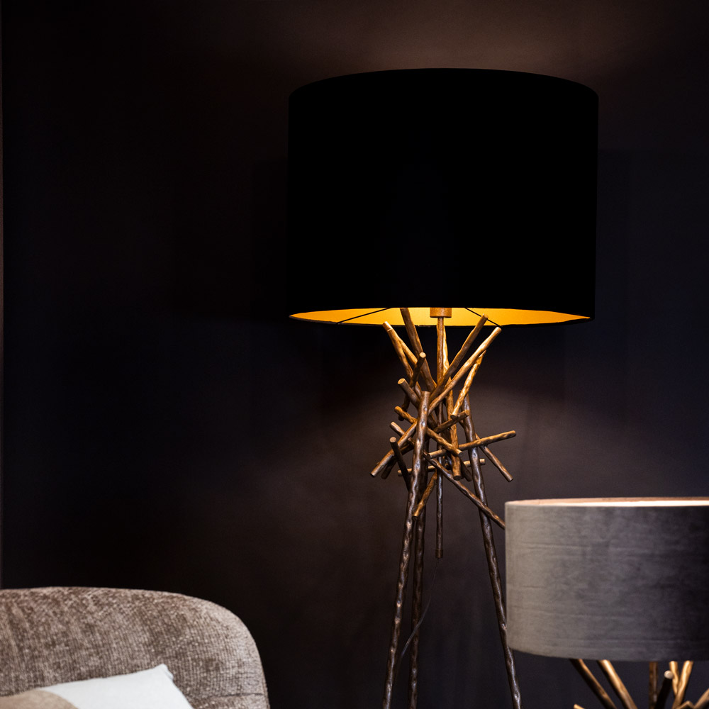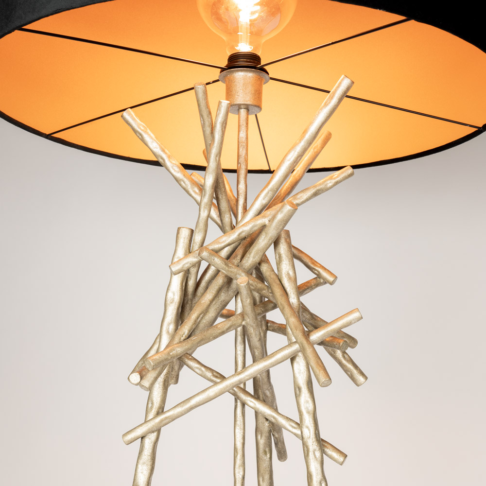 Homepagina / Vloerlamp Brut ambachtelijk zilver in organische design met takkenstructuur en zwarte kap