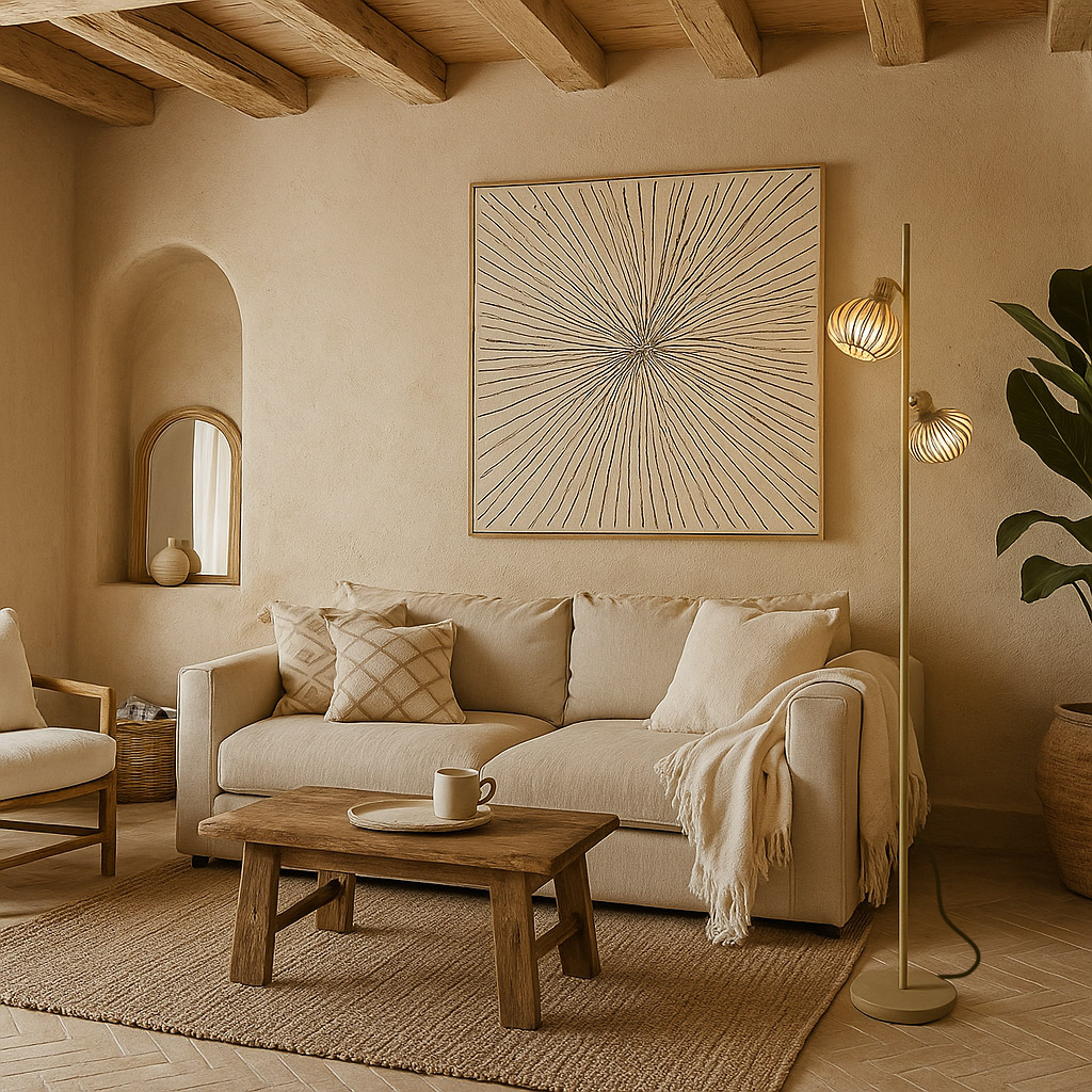 Een stijlvolle en functionele toevoeging aan je interieur! Deze moderne vloerlamp met twee verstelbare spots is perfect om gericht licht te creëren in je woonruimte, leeshoek of slaapkamer. De open metalen kappen zorgen voor een speels lichteffect en geven de lamp een luchtige, eigentijdse uitstraling. Dankzij de neutrale beige kleur past de lamp moeiteloos in Scandinavische, Japandi en moderne interieurs.