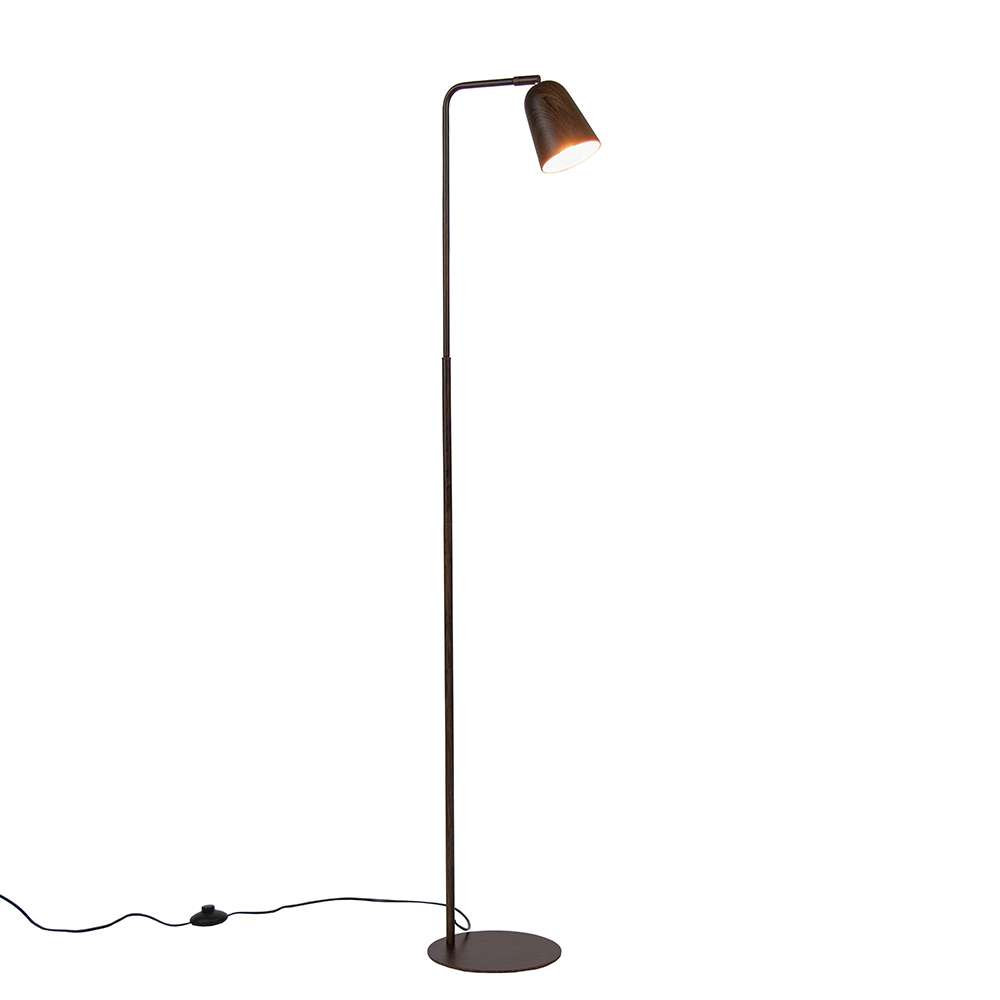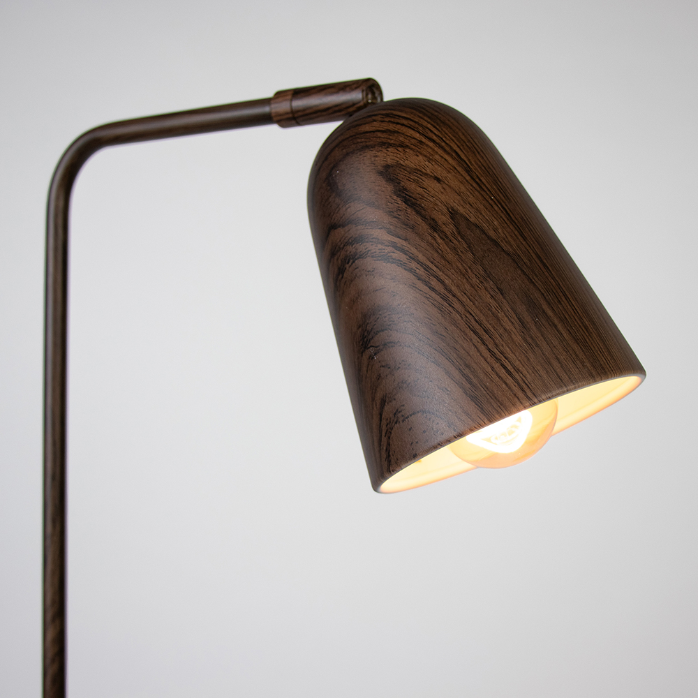 Deze leuke retro vloerlamp is is de perfecte toevoeging aan uw woonkamer, slaapkamer of kantoor! De lamp is gemaakt van metaal en voorzien van een houtlook in een donker bruine kleur. De lamp is verstelbaar door de kap te kantelen en/of te draaien. Zo kunt u de lamp helemaal naar wens verstellen! De retro lamp heeft een hoogte van 147 cm en is voorzien van een zwart snoer van 180 cm met een schakelaar op 70 cm. De retro tafellamp wordt excl. lichtbron geleverd.