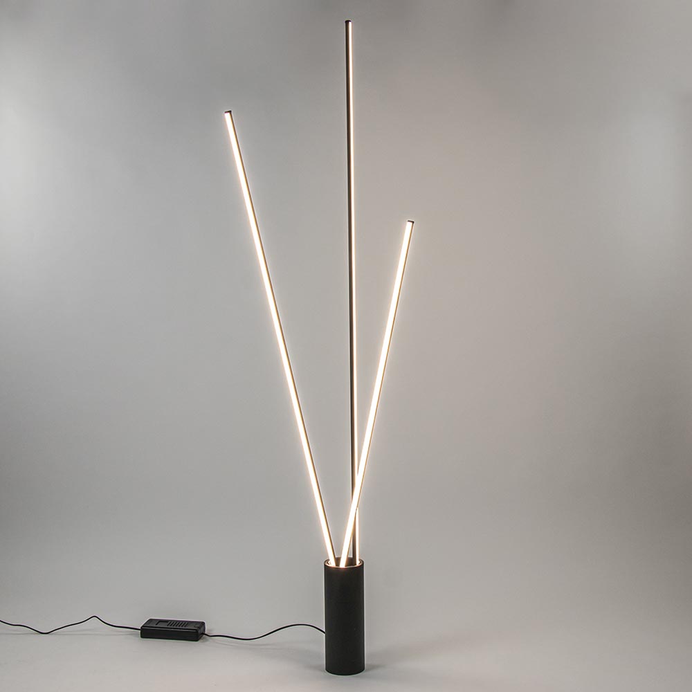 Een moderne vloerlamp met een hoogwaardig design. De 3-lichts vloerlamp is voorzien van LED wat de lamp energiezuinig maakt. De 3 armen zijn los van elkaar te verstellen door deze te kantelen en/of te draaien. De verlichting is dimbaar middels de dimmer in het snoer. Zo kunt u gemakkelijk de juiste sfeer creëren. Ideaal voor in de woonkamer of een andere ruimte met een donkere hoek. De moderne zwarte LED vloerlamp is voorzien van een zwart snoer van 185 cm, waarbij de dimmer op 50 cm in het snoer zit.