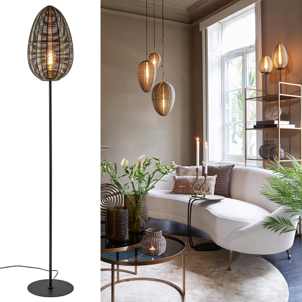 Moderne, trendy vloerlamp in een antiek bronzen kleur. Deze vloerlamp kan zowel in de moderne woonstijl als in een klassieke woonstijl worden toegepast. Hij past mooi in een woonkamer. De ronde eivormige kap wordt los gemonteerd op de voet. Hierdoor is de lichtbron gemakkelijk te plaatsen of te vervangen. Vloerlamp Yaelle van Light and Living heeft een snoer van 220 cm en de schakelaar bevindt zich op 100 cm van het armatuur. De vloerlamp wordt exclusief lichtbron geleverd.