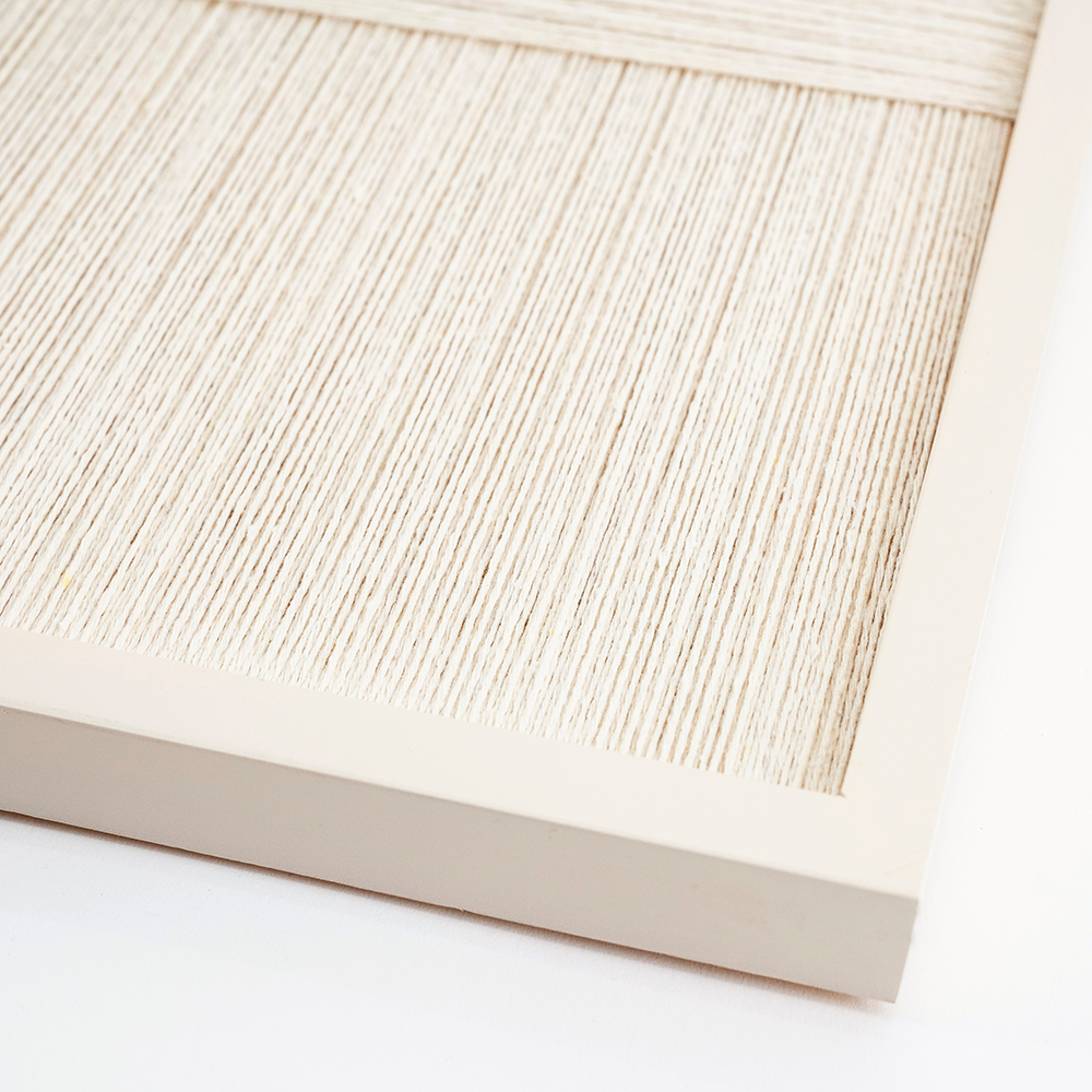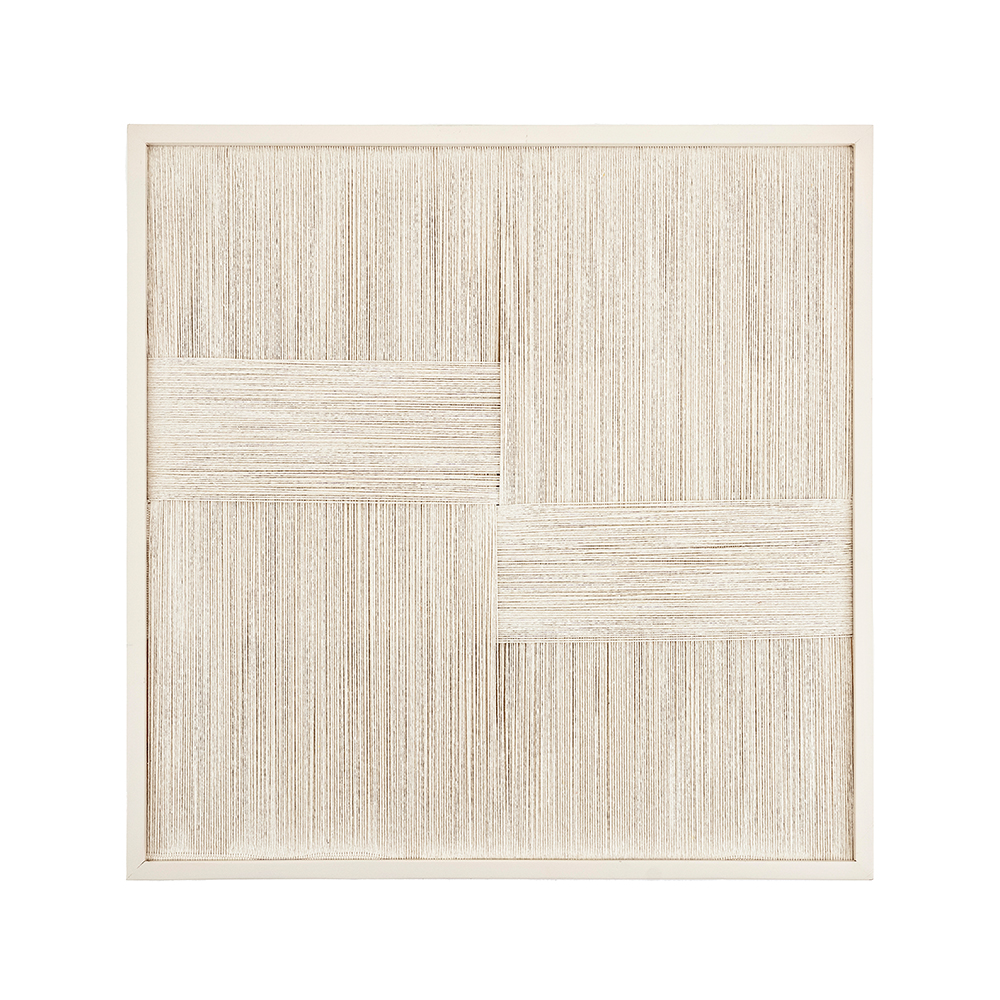Breng een warme, natuurlijke sfeer in huis met de “Lino” wanddecoratie van By-Boo. Dit handgemaakte paneel combineert een strak houten frame met fijn gedraaide polyester draden, waardoor een subtiel reliëf en een organische textuur ontstaat.