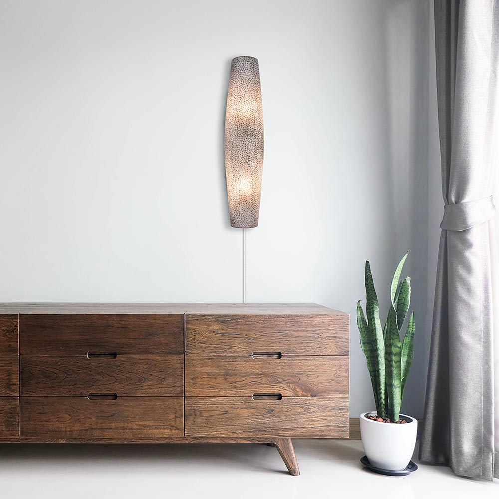 Een beetje strand en zee in huis halen? Dat kan met deze sfeervolle wandlamp. De wandlamp is gemaakt van gebroken stukjes capiz schelpen en geeft een leuk effect. Vooral wanneer de lamp wordt aangezet zorgen de schelpen voor een mooie, warme en gezellige sfeer. De schelpen wandlamp is op te hangen aan een metalen frame en heeft een transparant snoer met schakelaar. Omdat de lamp niet ver uitsteekt van de muur, is deze perfect geschikt voor bijvoorbeeld een hal of leuk naast het bed.