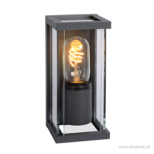 Deze kleine moderne wandlamp is multifunctioneel, hij kan namelijk zowel binnen als buiten (conform IP54) worden opgehangen. De lamp leent zich prima voor in een hal of woonkamer, maar ook naast de buitendeur verwelkomt deze strakke lamp sfeervol uw gasten. Het heldere glas beschermt de lichtbron (exclusief) en laat tegelijkertijd een hoop licht door. Door de E27 fitting is de lamp perfect geschikt voor LED, oftewel energiezuinig, ideaal wanneer de lamp buiten lang brandt. Het antraciete frame wordt direct op de muur geplaatst waardoor er geen losse snoeren zichtbaar zijn. Strak, modern èn sfeervol in één.
