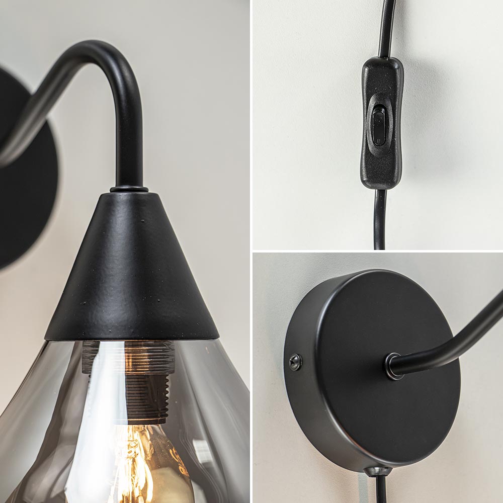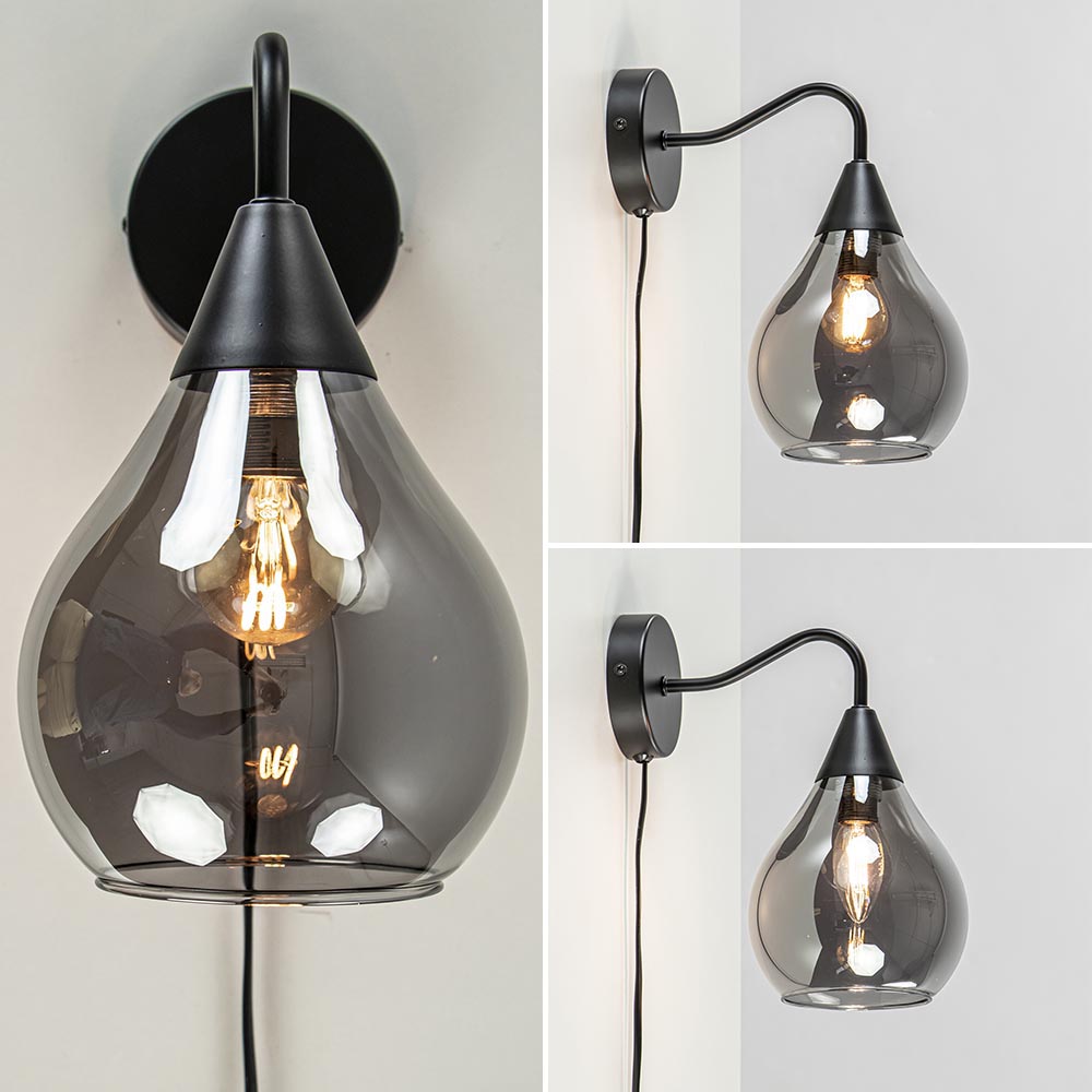 Een sfeervolle wandlamp voor net even wat extra sfeer in huis. De wandlamp past mooi in een hal, woonkamer of boven het nachtkastje. De wandlamp heeft een moderne luxe uitstraling door het spiegelende titanium glas. Het donkere glas sluit mooi aan op de fitting doordat het glas zelf is voorzien van schroefdraad. De zwart metalen bevestiging is voorzien van een snoer van 145 cm, met een knipschakelaar op 90 cm. De chique wandlamp wordt geleverd zonder lichtbron (E14).