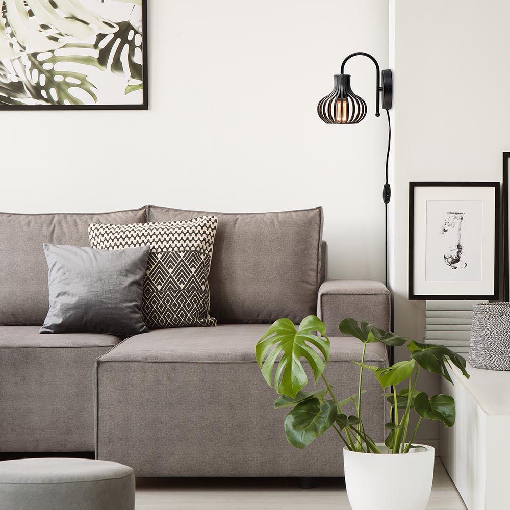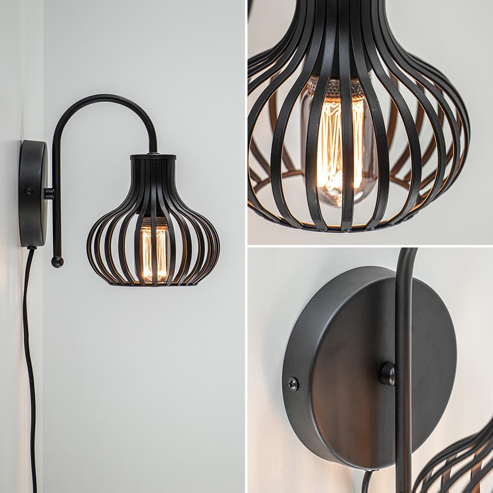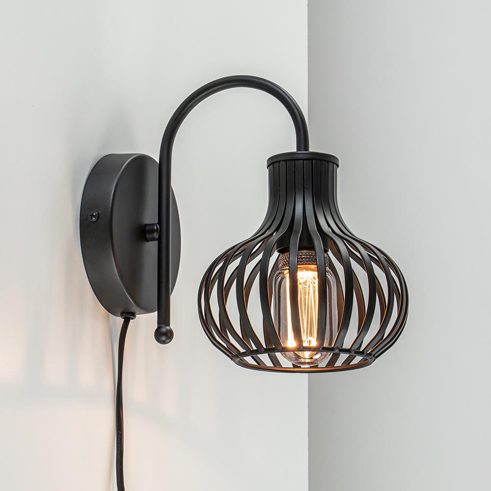 Dit leuke wandlampje is een perfecte toevoeging aan het interieur. Het wandlampje is volledig van metaal en afgewerkt met een mat zwarte finish wat zorgt voor een moderne en stoere uitstraling. De zwarte wandlamp is voorzien van een ui-vormige kap die met een gebogen arm aan de bevestiging hangt. Door het kleine formaat kan de moderne wandlamp overal worden opgehangen, en groot voordeel is ook dat deze niet direct op een stroompunt hoeft. De ui-vormige wandlamp wordt namelijk geleverd met een zwart snoer van 185 cm.. Ideaal wanneer u de lamp als bedlampje wilt gebruiken of in de woonkamer naast de bank. De bevestiging is eenvoudig te monteren op de muur. U kunt er ook voor kiezen om direct een op een stroompunt aan te sluiten en het snoer weg te halen. De kleine draad wandlamp matched perfect in een Scandinavisch, modern of landelijk interieur en zorgt voor een fijne sfeer.