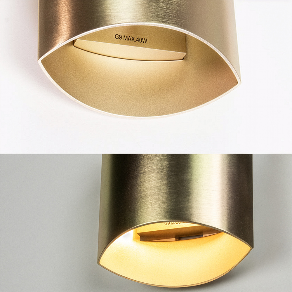 Deze mooie chique wandlamp is een leuke toevoeging aan uw interieur. De wandlamp werkt zowel als een up en downlighter. Zo ontstaat er een mooie sfeervolle lichtverspreiding op de wand. De wandlamp is gemaakt van metaal en uitgevoerd in het goud. Dit geeft deze gouden wandlamp een trendy en luxe uitstraling. Deze wandlamp wordt zonder lichtbron geleverd. Hij is dimbaar met de juiste dimmer (exclusief).