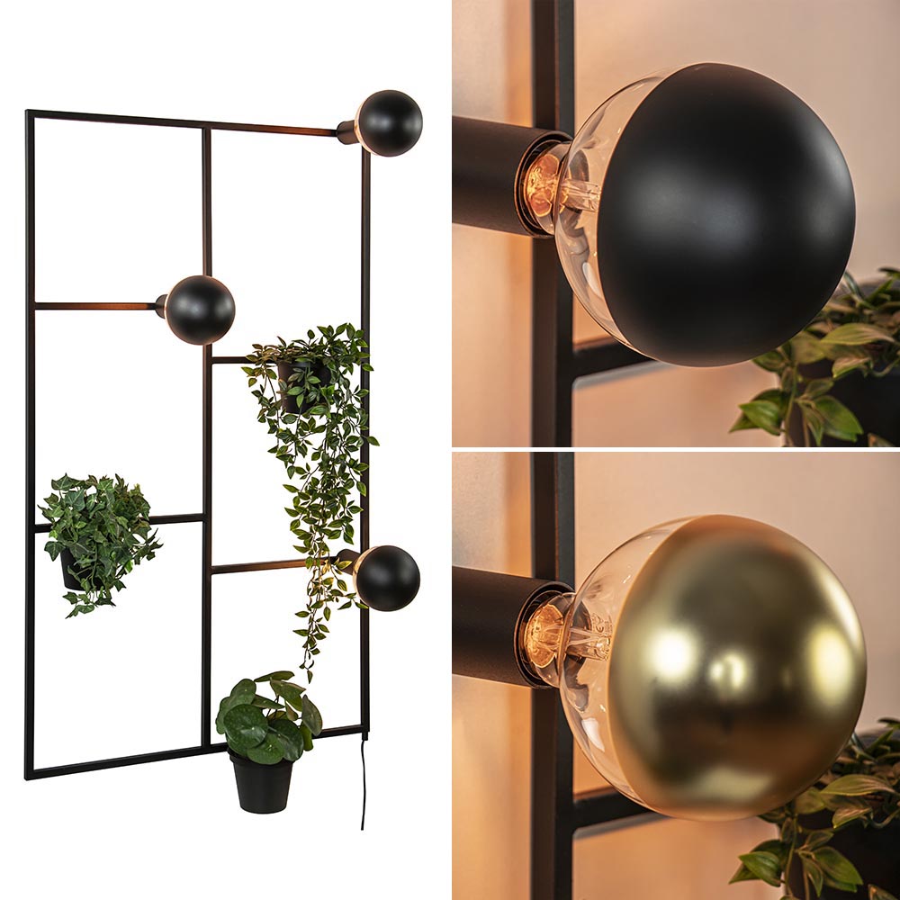 / Lampen / Wandlampen / Wandlamp frame + potten zwart