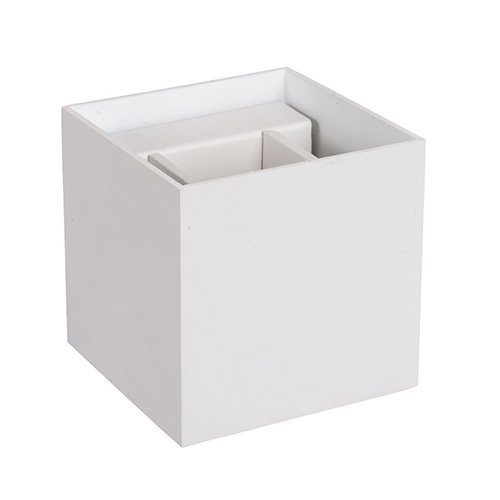 Een klein maar krachtig lampje, deze vierkante wandlamp. De witte kubus lamp is gemaakt van aluminium en is daardoor lekker licht, ideaal voor op een dunne wand. De lamp is voorzien van een LED lichtbron waardoor de lamp niet warm wordt en ook nog eens energiezuinig is. De lichtverspreiding is van binnenin de lamp te regelen zodat er boven, onder of aan beide richtingen verlicht wordt. Ideaal in de hal of naast het bed. Deze wandlamp is een kleine maar sterke en sfeervolle toevoeging aan uw verlichting.