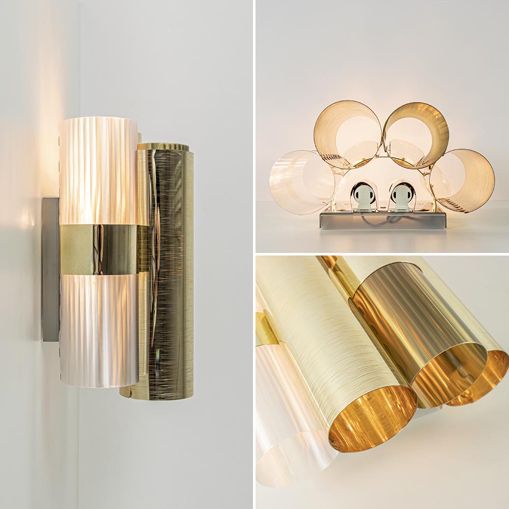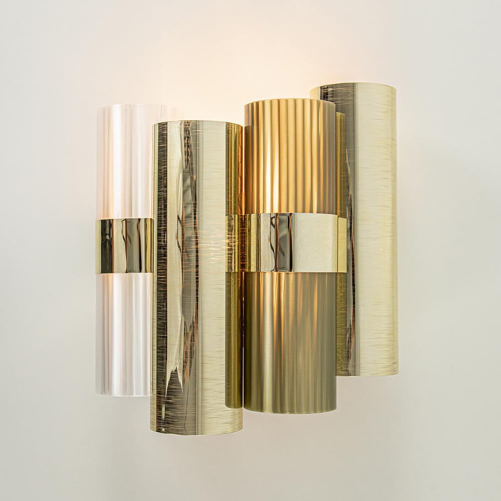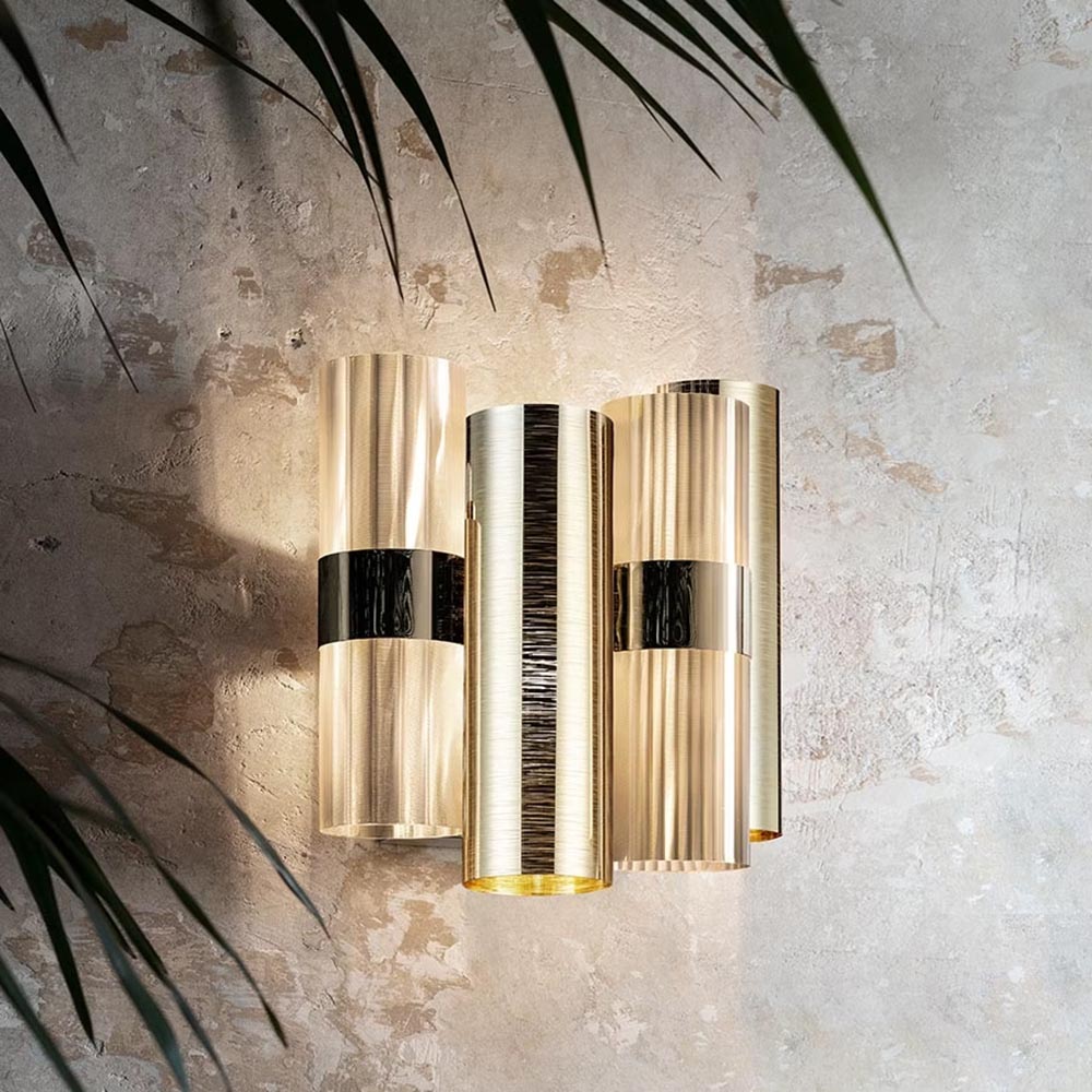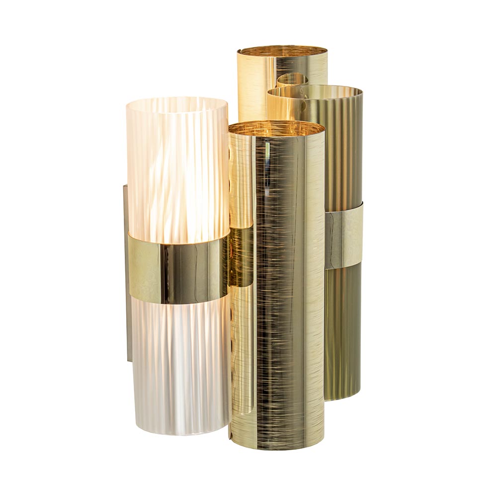 Deze leuke wandlamp heeft een prachtige luxe uitstraling. Door de speling van de verschillende kleuren goud in combinatie met de verschillende structuren van de kokers krijgt de wandlamp een hele organische interessante uitstraling. Het goud maakt de lamp geschikt voor diverse woonstijlen en door de grootte van de lamp kan deze worden toegepast in diverse ruimtes. De lamp wordt zonder lichtbronnen geleverd en is niet voorzien van een snoer.