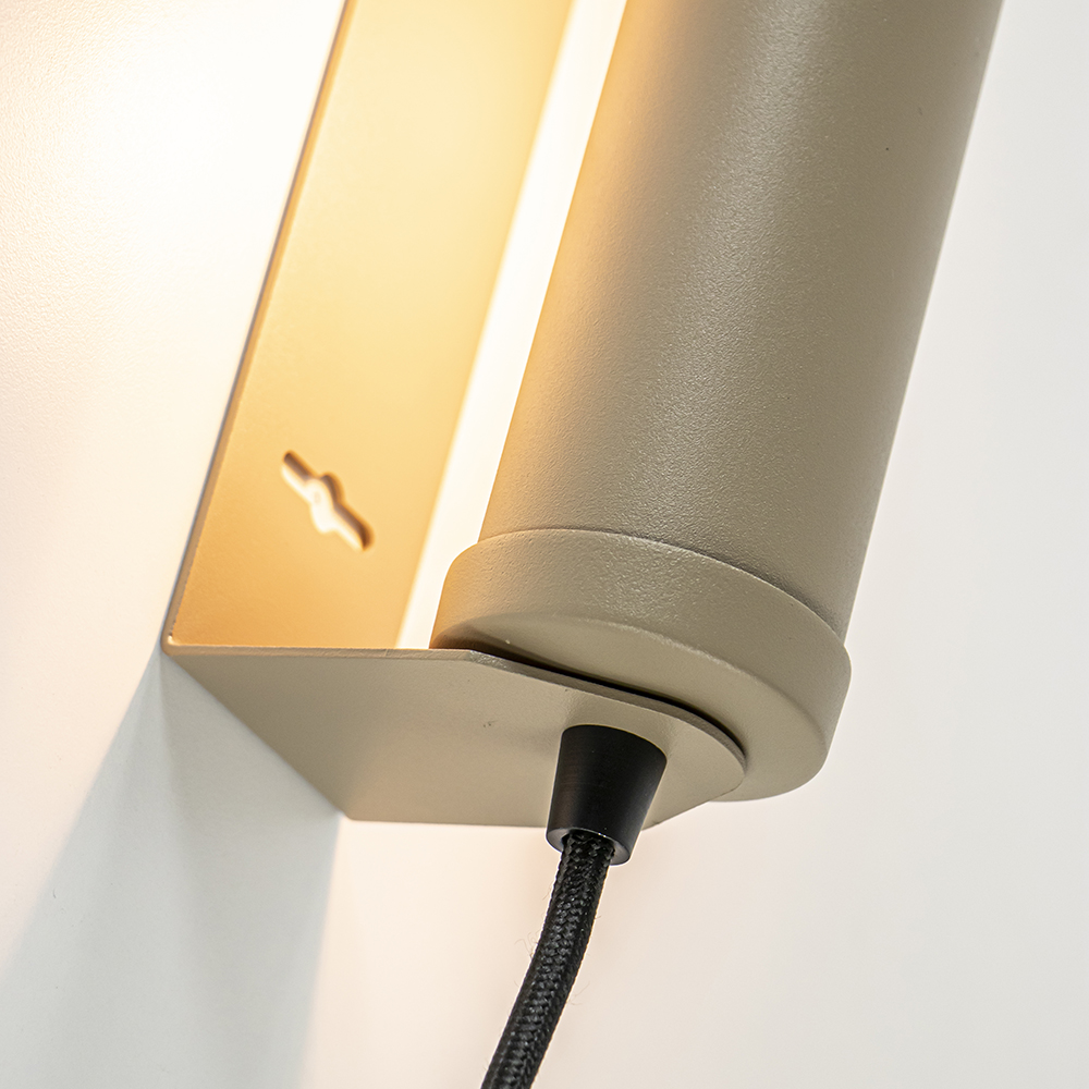 – afm: 5×8,5×24 cm – draaibare kap – metaal – mat zand – inclusief snoer: 200 cm – exclusief lichtbron (E14)