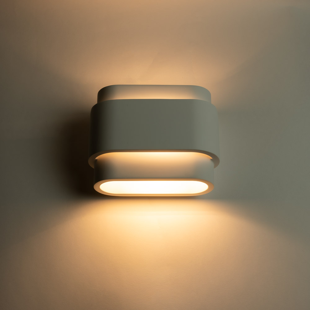 Deze mat witte wandlamp is een rustige en tijdloze sfeermaker die moeiteloos opgaat in het interieur. Het afgeronde, gelaagde ontwerp zorgt voor een zacht up & down lichteffect, waarbij het licht subtiel over de muur wordt verspreid. Ideaal wanneer je sfeer wilt toevoegen zonder dat de lamp de aandacht opeist.
