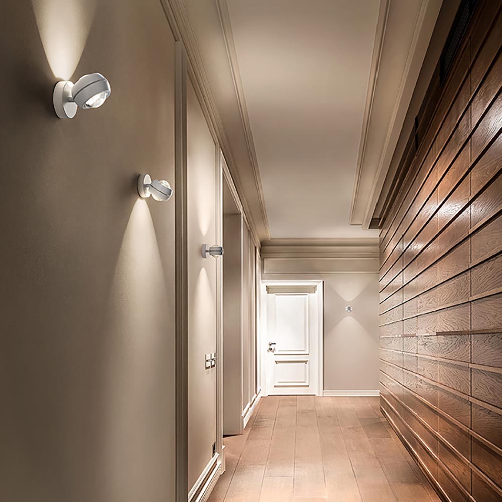 Een kleine wandlamp met een groots effect. Deze design wandlamp is een up + down lighter en is voorzien van energiezuinige LED verlichting. Wat de kleine ronde wandlamp zo uniek maakt is dat deze verstelbaar is. Zo is de kleine bol 355° te draaien en daarnaast ook nog eens 90° te kantelen. Zo kunt u het licht helemaal naar wens verspeiden. Het minimalistische design krijgt een eigen karakter door de lenzen van de wandspot. Deze zorgen voor een mooie lichtverspreiding die met 1120 lumen een flinke opbrengst geeft. De wandlamp is dimbaar middels een externe dimmer (exclusief).