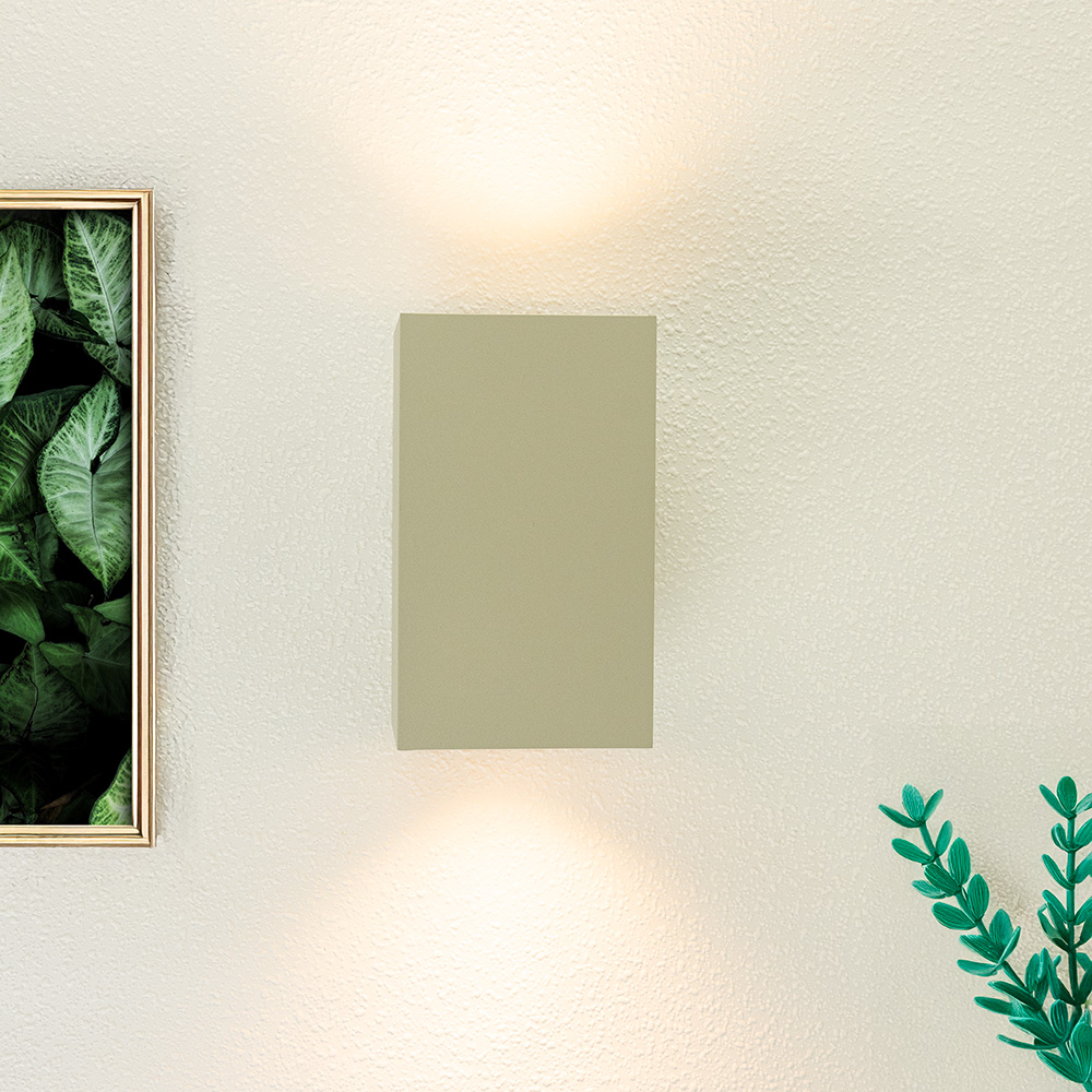 Dit kleine maar krachtige wandlampje zorgt voor de juiste verlichting en sfeer bij u in huis.De wandlamp is uitgevoerd in de nieuwste kleur beige De beige kap is voorzien van twee lichtbronnen die zowel naar beneden als naar boven verlichten en zo een mooie en sfeervole lichtverspreiding maken. Door het kleine formaat past de wandlamp overal in huis en kan deze mooi dienen als sfeerverlichting. Ook in de slaapkamer kan dit wandlampje mooi werken als bedlampje.