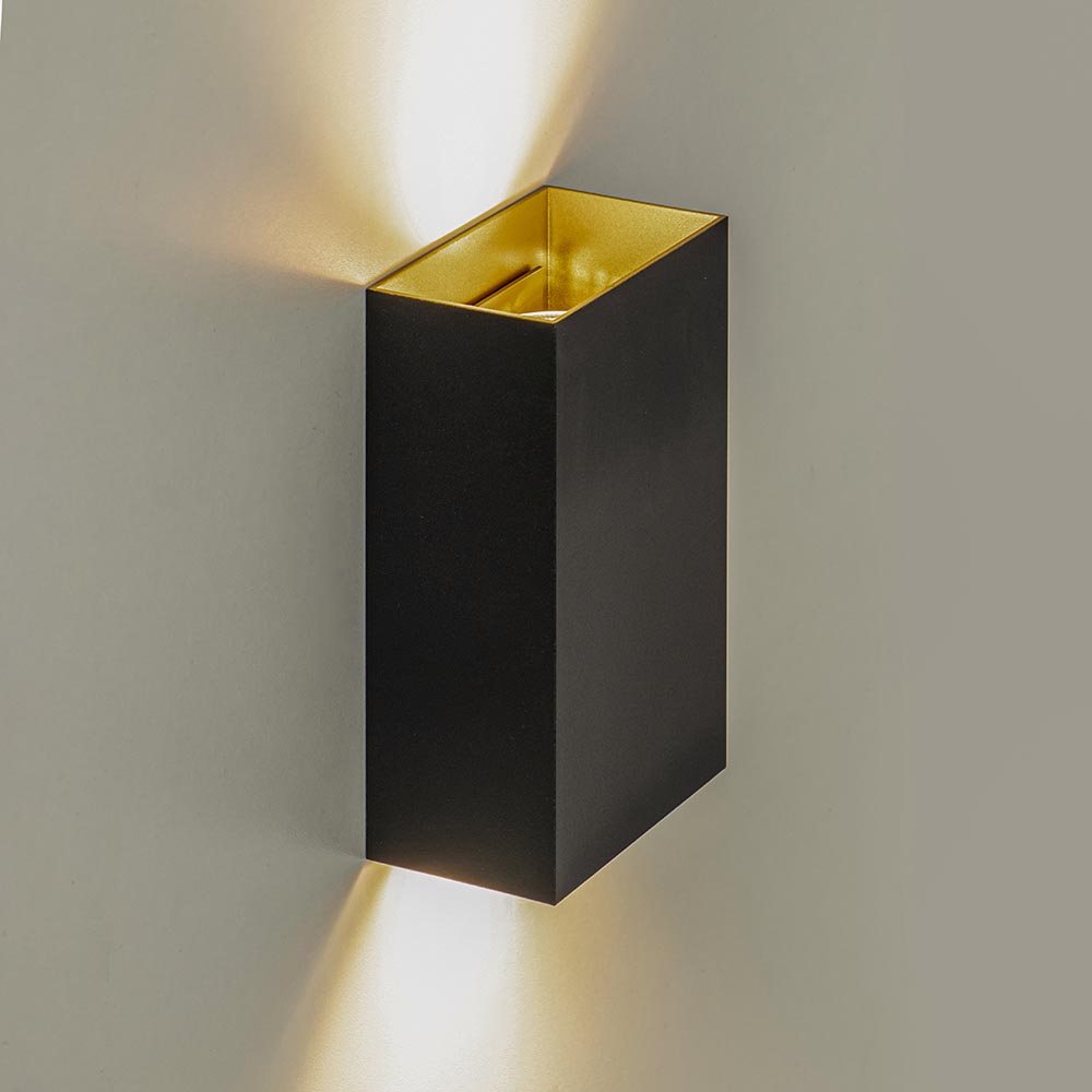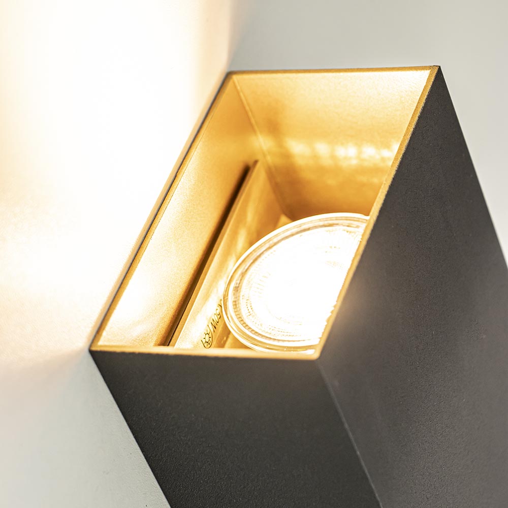Homepagina / Lampen / Wandlampen / Wandlamp rechthoek zwart/matgoud 2xgu10