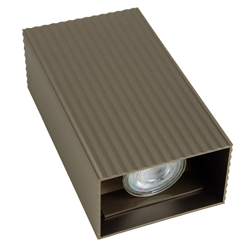 De nieuwste aanwinst onder onze wandlampen. Deze mooie sfeermaker is uitgevoerd in aluminium en voorzien van een ribbel in een warme bronzen kleur. Dit geeft een heel mooi chique effect. Geschikt voor in de hal, woonkamer of slaapkamer. De wandlamp is klein van stuk maar zorgt voor een groot effect in de ruimte. De rechthoekige wandlamp werkt namelijk als een up en downlighter. De wandlamp is van binnen voorzien van 2 GU10 fittingen. Dit zorgt voor een sfeervol zandloper effect op de wand. De wandlamp is niet voorzien van een snoer en wordt geleverd exclusief lichtbron. De wandplaat kan eenvoudig los worden gemonteerd op de muur waarna de rechthoekige kap eroverheen kan worden geschoven.