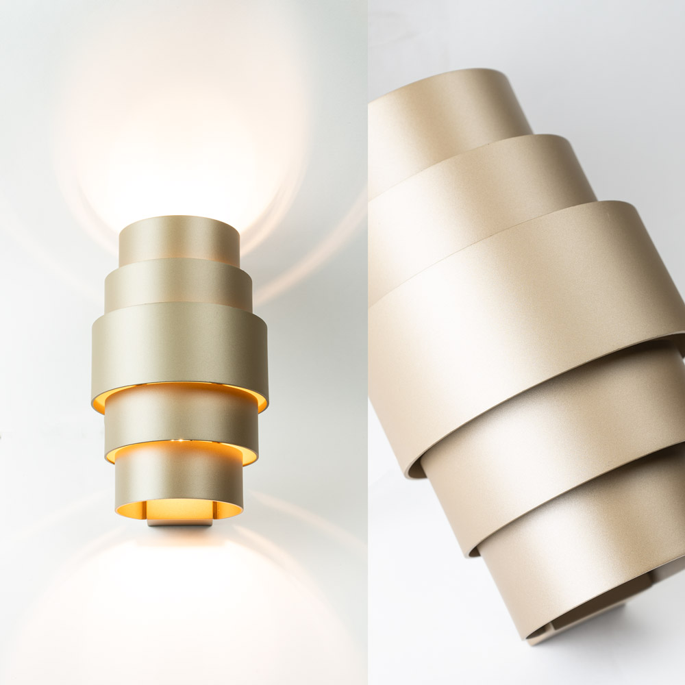 De Rolls wandlamp in champagnekleur is een elegante en moderne wandlamp met een rustige, luxe uitstraling. Het cilindervormige ontwerp zorgt voor een symmetrisch up & down lichteffect, waardoor de wand op een subtiele manier wordt uitgelicht. Dit maakt de Rolls perfect als sfeerverlichting én als stijlvol accent.