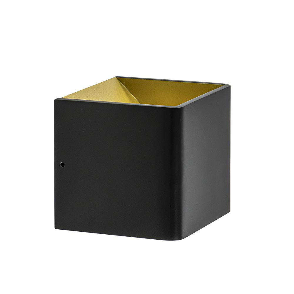 Een minimalitisch design met een sfeervol effect. Deze kleine wandlamp zorgt door het zandloper effect op de muur voor een fijne sfeerverlichting. De zwart met gouden wandlamp is vierkant en van binnen voorzien van LED verlichting. Het LED geeft met 2700 Kelvin warm witte verlichting en zorgt met 600 lumen voor een prima lichtopbrengst. Het matte zwart zorgt dat de vierkante LED wandlamp mooi overloopt op een donkere wand, of juist meer opvalt op een contrasterende kleur. De mat zwart met gouden kubus heeft geen snoer en dient direct op een stroompunt te worden aangesloten. Ideaal voor extra sfeer in de woonkamer, hal of slaapkamer.