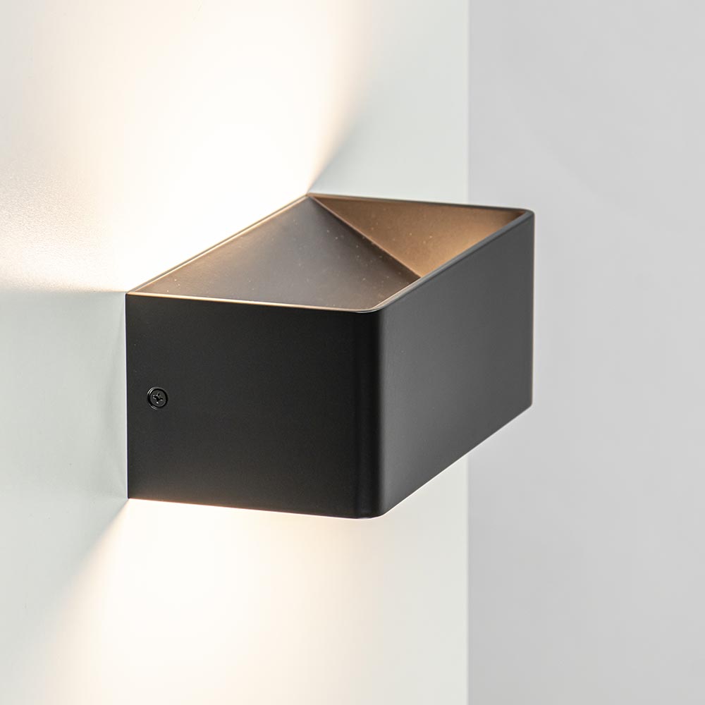 Een minimalitisch design met een sfeervol effect. Deze moderne wandlamp zorgt door het zandloper effect op de muur voor een fijne sfeerverlichting. De mat zwarte wandlamp is rechthoekig en van binnen voorzien van LED verlichting. Het LED geeft met 2700 Kelvin warm witte verlichting en zorgt met 600 lumen voor een prima lichtopbrengst. Het matte zwart zorgt dat de rechthoekige LED wandlamp mooi overloopt op een donkere wand, of juist meer opvalt op een contrasterende kleur. De zwarte wandlamp heeft geen snoer en dient direct op een stroompunt te worden aangesloten. Ideaal voor extra sfeer in de woonkamer, hal of slaapkamer.