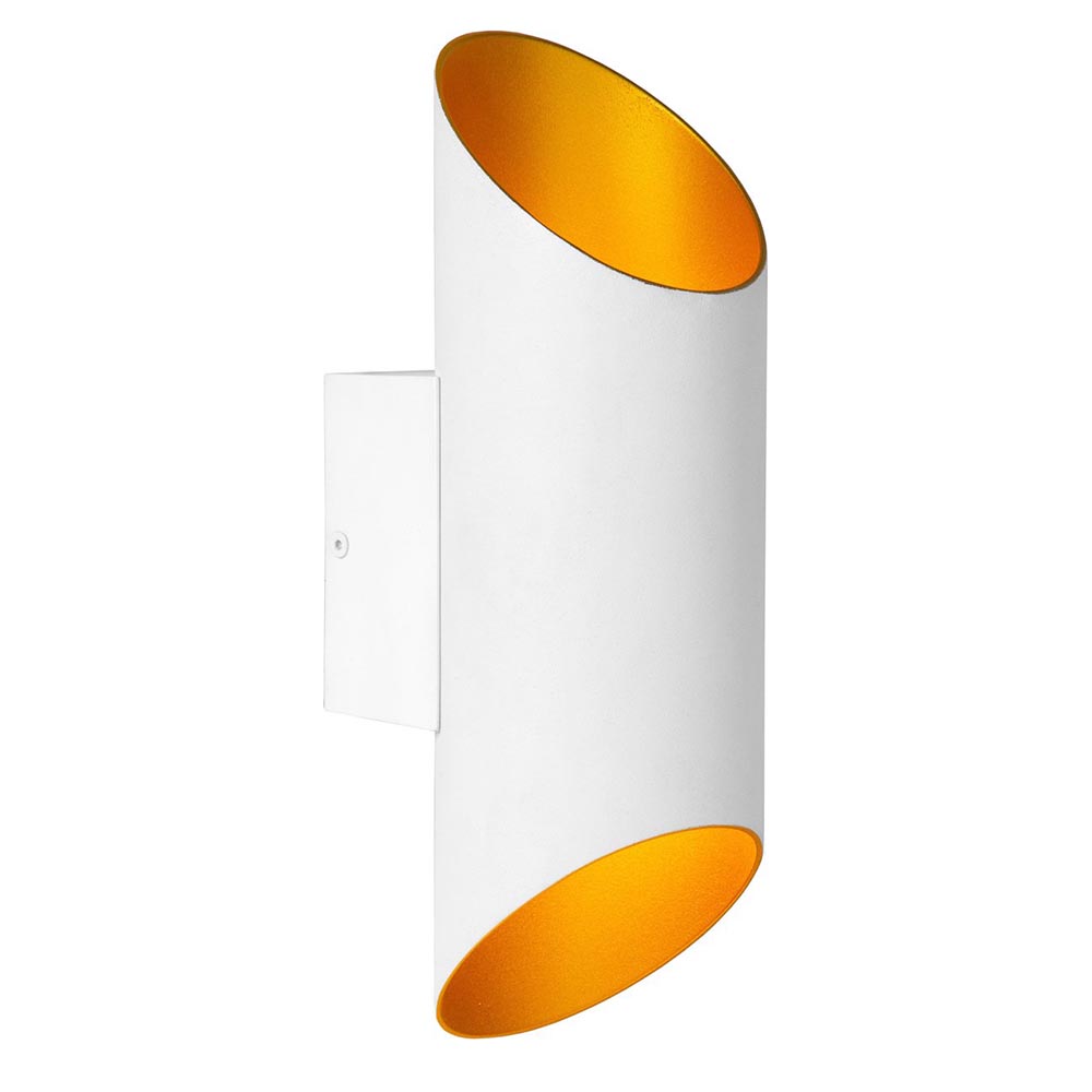 Deze wandlamp zorgt voor een sfeervol effect en geeft een extra dimensie aan het interieur. De cilinder wandlamp is gemaakt van metaal en uitgevoerd in het wit met goud. Door de schuine afsnijding krijgt de wandlamp een strakke look en het zorgt er ook voor dat de verlichting wat breder kan worden verspreid. De cilinder wandlamp heeft een hoogte van 30 cm en 9,6 cm breed. Een mooie toevoeging voor een hal, woonkamer of slaapkamer. De wandlamp wordt geleverd exclusief lichtbron.
