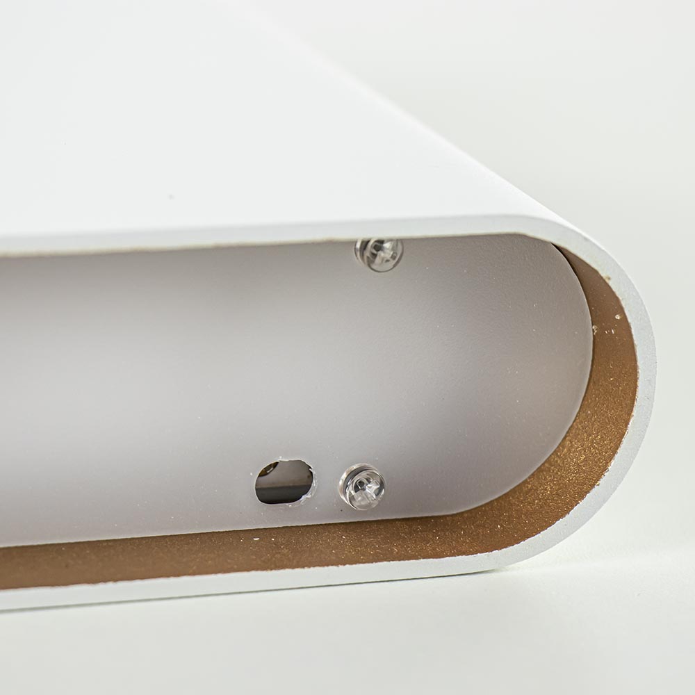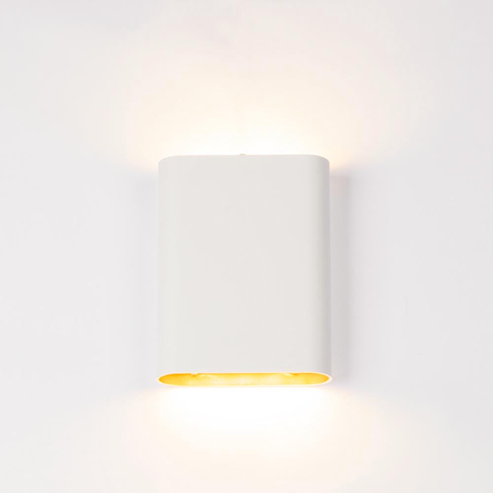 – afm: 15,5×4,5×20 cm – bevestiging: 11×15,5 cm – inclusief LED – 2700 kelvin – 720 lumen – metaal – wit/goud – dimbaar (exclusief)