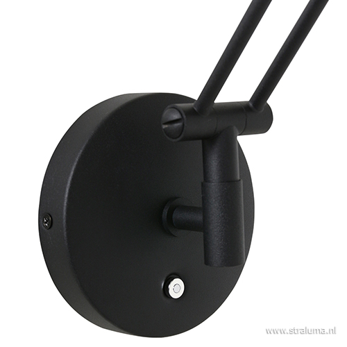 Een ideale wandlamp voor naast uw bank of bij uw bureau. De mat zwarte lamp is gemakkelijk te verstellen d.m.v de twee scharnieren in de arm en daarnaast is ook de kap te draaien en te kantelen. Groot voordeel van deze wandlamp is dat deze niet op een contactdoos hoeft te worden aangesloten, omdat de moderne lamp wordt geleverd inclusief zwart snoer, zo kunt u de lamp overal ophangen. De kap is voorzien van LED, waardoor de lamp energiezuinig is, gemakkelijk te bedienen is en te dimmen is via de schakelaar op de wandbevestiging.