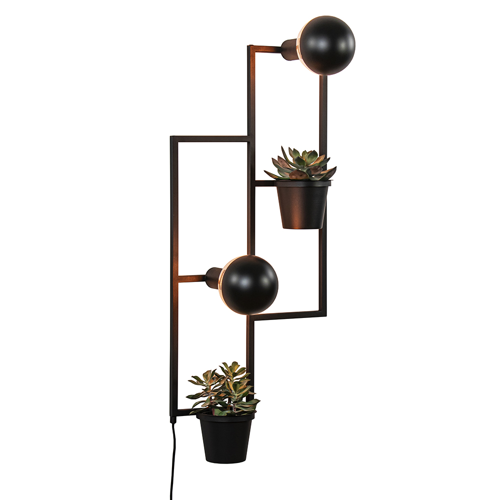 – afm: 39x14x90 cm – metaal – zwart – inclusief snoer: 150 cm – inclusief potjes – exclusief lichtbron (2x E27) – exclusief plantjes