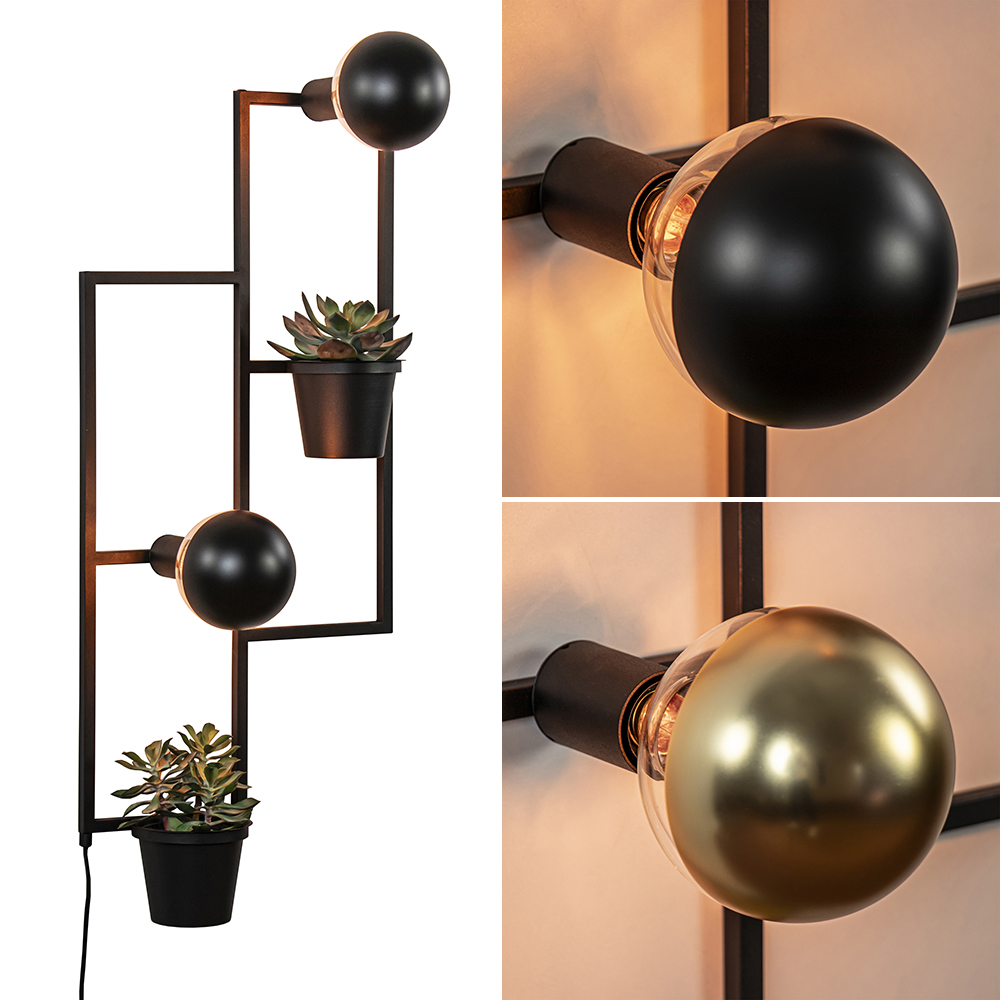 / Lampen / Wandlampen / Wandlamp zwart met bloempotjes 2x E27
